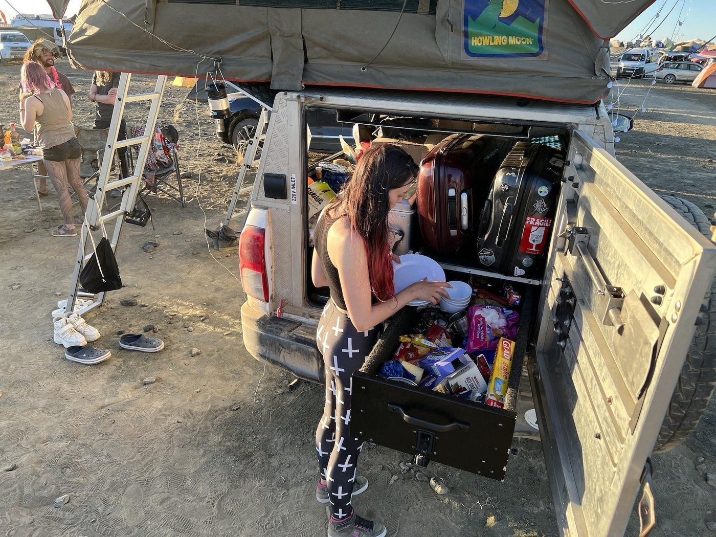 Для незнакомых с бёрном: на него можно ехать «дикарём», а можно ехать «лагерем». Оба варианта норм. Когда едешь «дикарём» — ты обеспечиваешь всем себя сам: палаткой, едой, водой, газом, электричеством, приготовлением еды и кофе с утра. Мы так ездили в 2022-м и в целом кайфанули вчетвером.