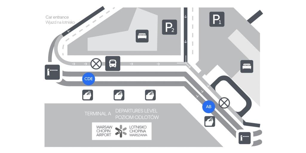 Чтобы добраться из Шопена на такси, у вас есть два варианта. Если вы бумер, сразу же выходите на улицу, вас будут ждать прожжённые варшавские таксёры со счётчиками наготове. Бояться нечего, это одобренные аэропортом такси, других здесь нет. Если вы зумер, сразу же поднимайтесь на этаж выше в зону отправлений и выходите из здания. Расчехляйте свои зумерские приложения (все равно с вами не о чем разговаривать) и вызывайте такси через Bolt/Uber. Вероятно, приложение предложит вам точнее выбрать сектор посадки — AB или CDE. Один слева по фасаду, другой справа.