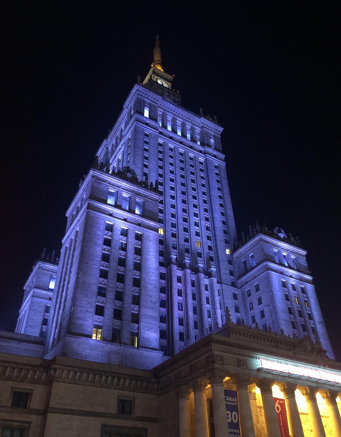Дворец культуры и науки (Pałac Kultury i Nauki, PKiN) — сталинская высотка в центре Варшавы. У местных иногда вызывает споры, но все равно считается символом города. Здание пробуют окружить новыми безликими небоскрёбами, но чем больше строят, тем больше оно выделяется. Наверху есть смотровая площадка, хороша как днём, так и вечером. Здание иногда подсвечивают в честь актуальных событий.