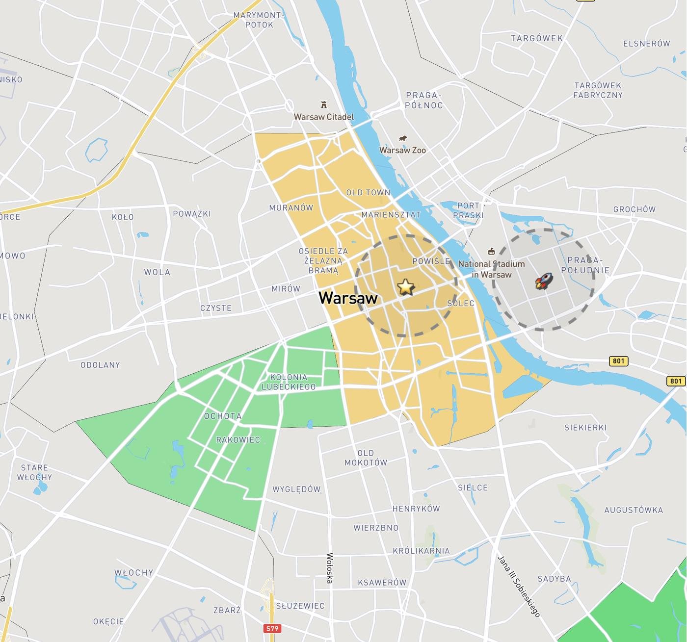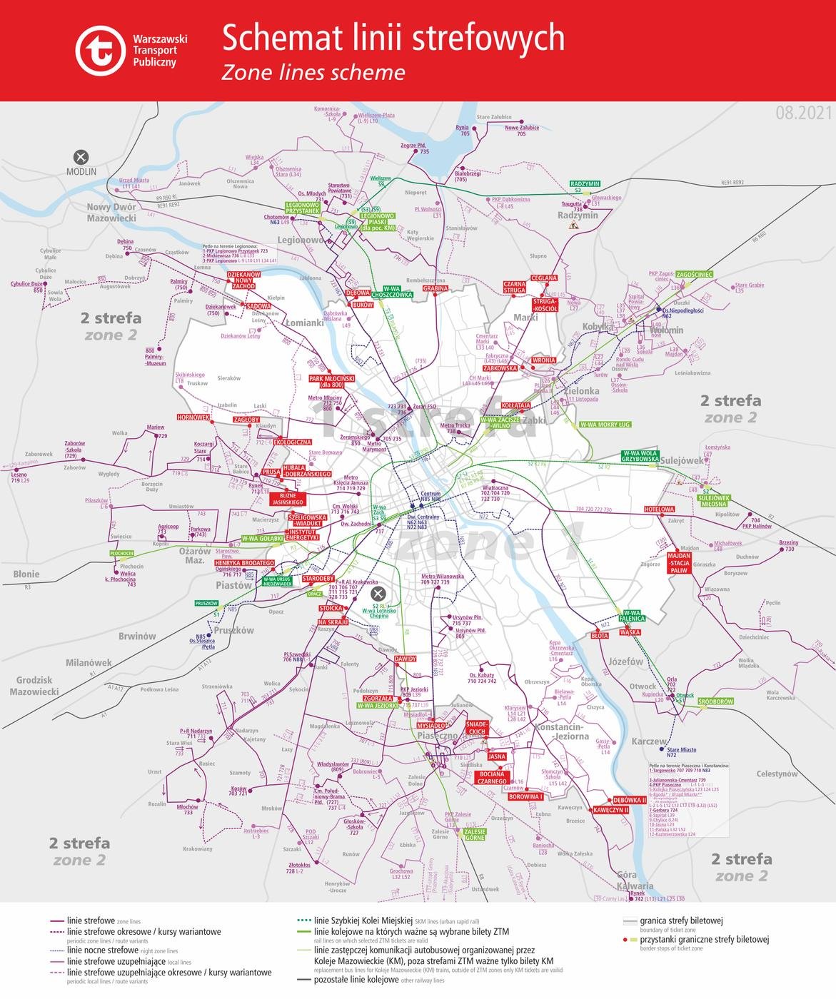 Варшава разделена на две зоны: strefa 1 и strefa 2, зона указана на билете. Всё, что вам нужно, с вероятностью 95% находится в зоне 1, поэтому можете не волноваться. Если вы обнаружили себя в зоне 2, то вы или поляк, или что-то пошло не так: загрузите игру из последнего сохранения.