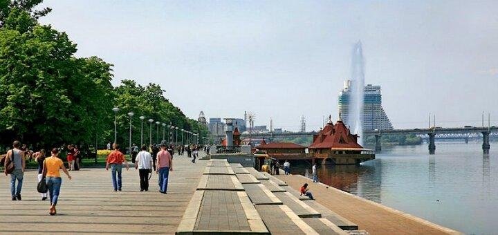 Также можно взять небольшую прогулку на катере по Днепру, на которые будут звать зазывалы на этой самой набережной.