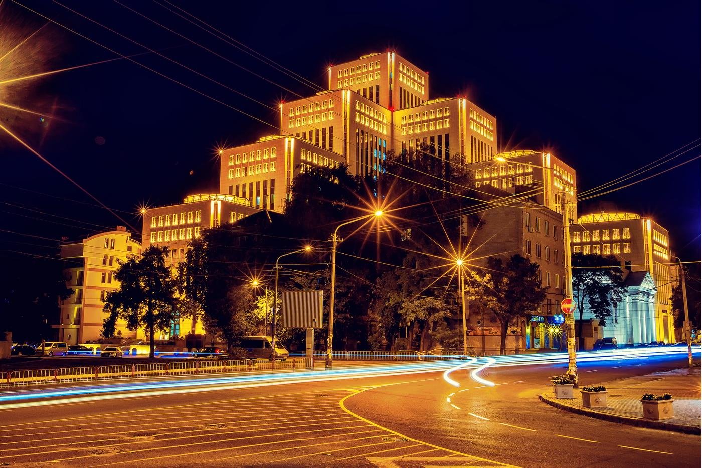 Сичеславская набережная, Европейская площадь, ул. Короленко и ул. Южная – красивая иллюминация, хороший выбор для вечерних прогулок.