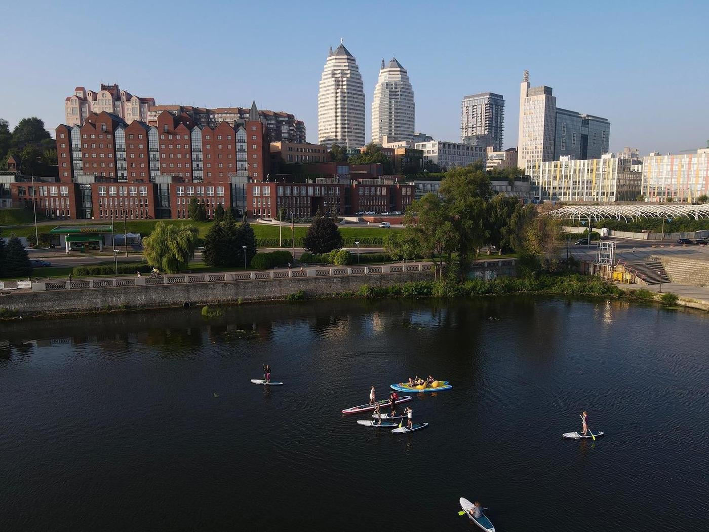 Также на набережной можно найти точки аренды SUP-досок и каяков для активного отдыха (например, Sup Station Dnipro).