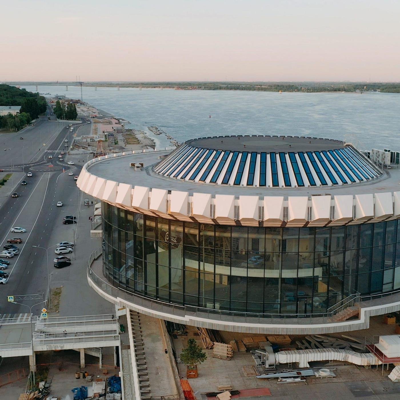 Если хочется пафосно и дорохобохато трапезничать видом на Волгу - добро пожаловать в, наверное, главный ресторан "Река" в бывшем речпорту. Расположен он в такой "шайбе" в стиле советского модерна.