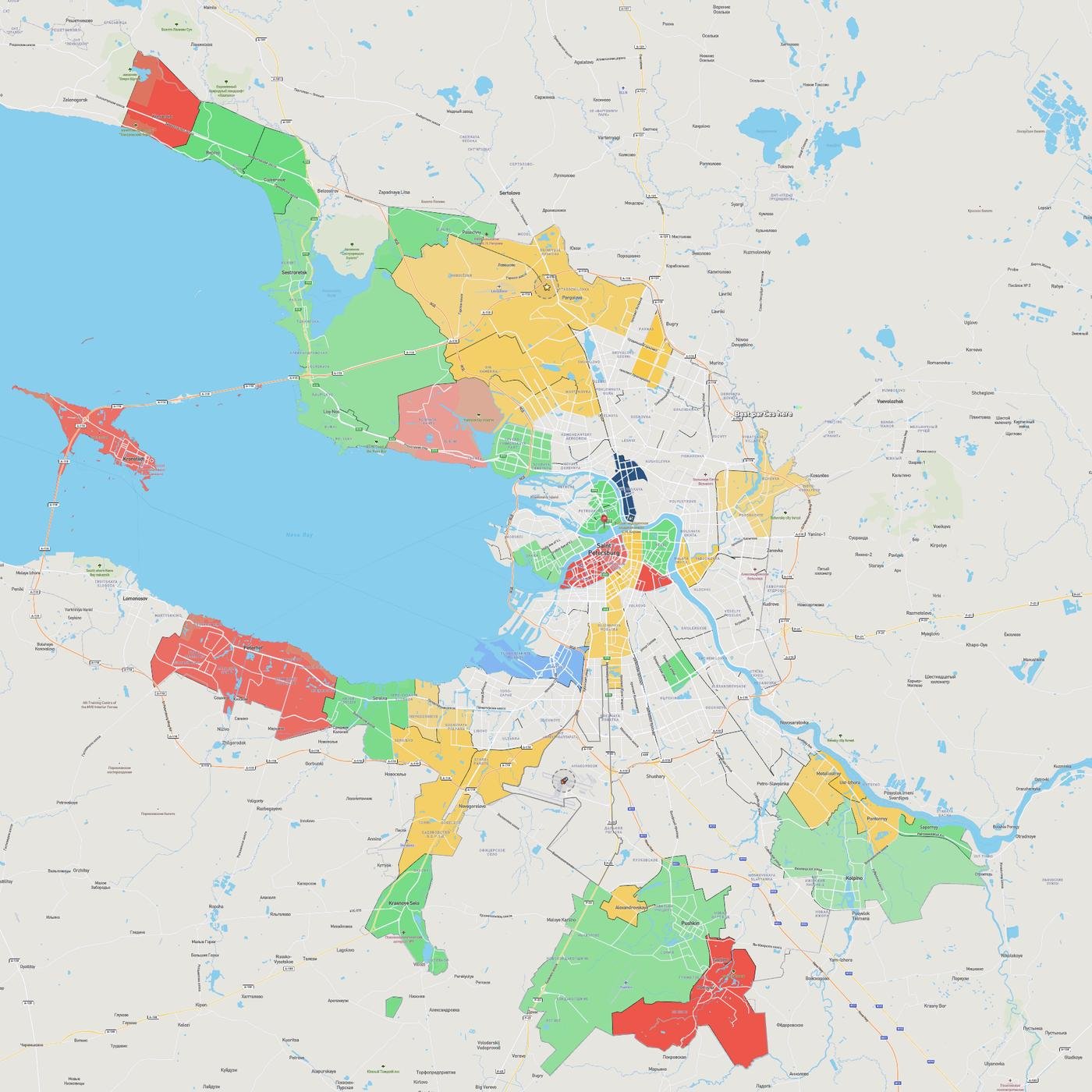 Не стоит селиться в Кудрово и Мурино – могут быть сложности с выездом в город. Подумайте, как вы будете перемещаться: метро есть далеко не везде даже в центре (Коломна, Мариинский театр, остров Новая Голландия и станция Театральная передают пламенный привет).