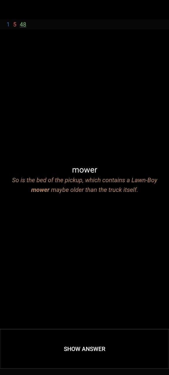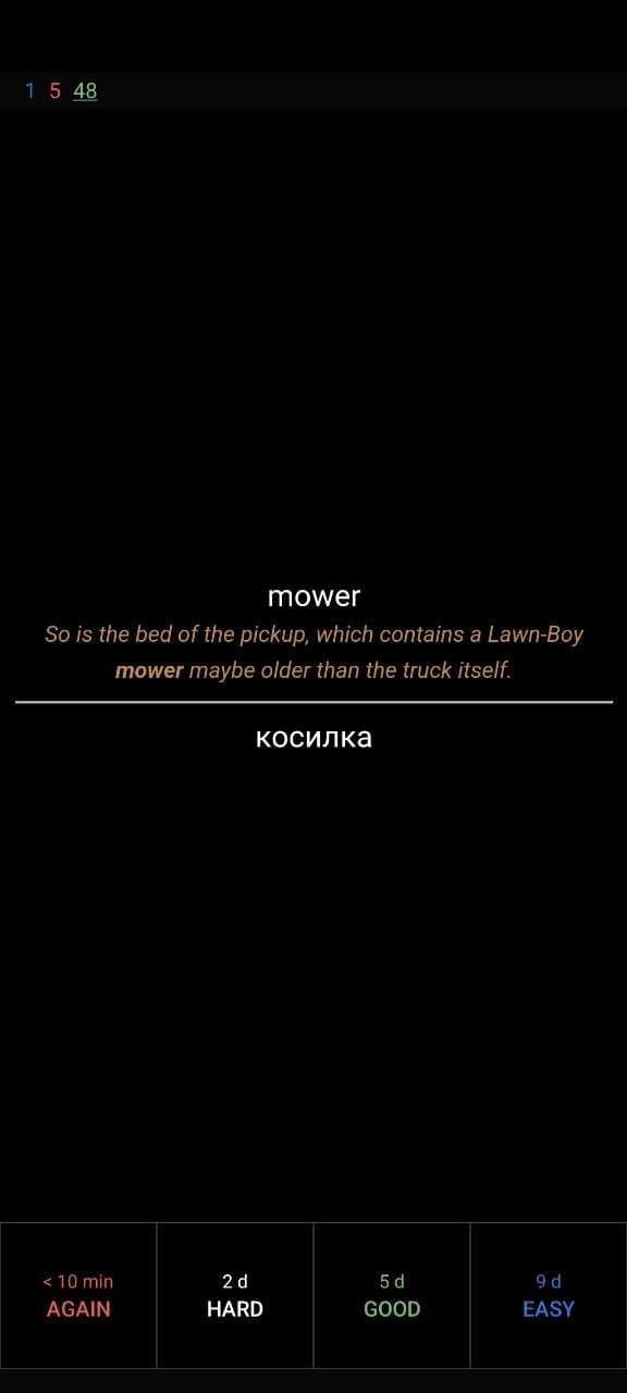 А ту колоду на 16000 слов, с уже изученной парой сотен слов, я удалил, потому что и набор слов хотя и был интересным, но не был полезным, и все эти слова с кучей определений из нескольки словарей не помогают лучше понимать контекст и выбирать нужное из возможных значений.