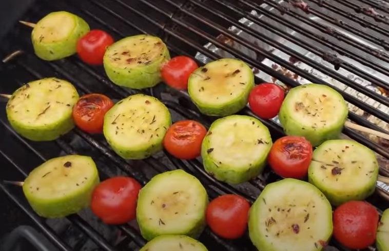 На гриле мне легче и удобнее. на мангале сложнее контролировать стабильность жара, жар только снизу, нужно постоянно крутить и следить. жир капает - пламя. в гриле - на брикетах ровный постоянный жар, под крышкой оно подпекается и сверху, мало кислорода - нет пламени, жарится сабильно и всегда сочно. То есть, я просто кладу шампуры на решетку, раз в 2.5 минуты переворачиваю. перевернуть надо три раза, то есть жарится вырезка или курица за 10-12 минут.