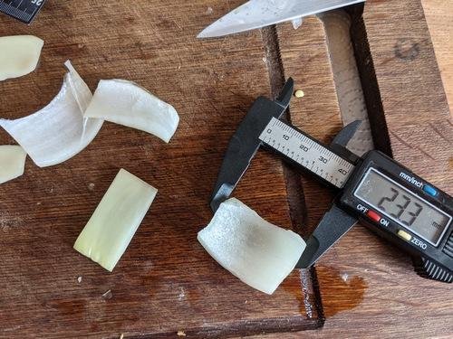 Может, у тебя есть возможность перемерять микрометром толщину нарезанного кабачка, а то так сложно понять по фотке.