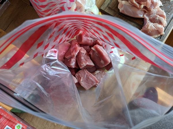 Нарезанные мясо, лук, перец сложить в зип пакет (зип пакеты для маринада - это очень удобно. маринад окружает мясо, легко перемешивать, не надо мыть кастрюлю и тп. +15 к продуктивности).