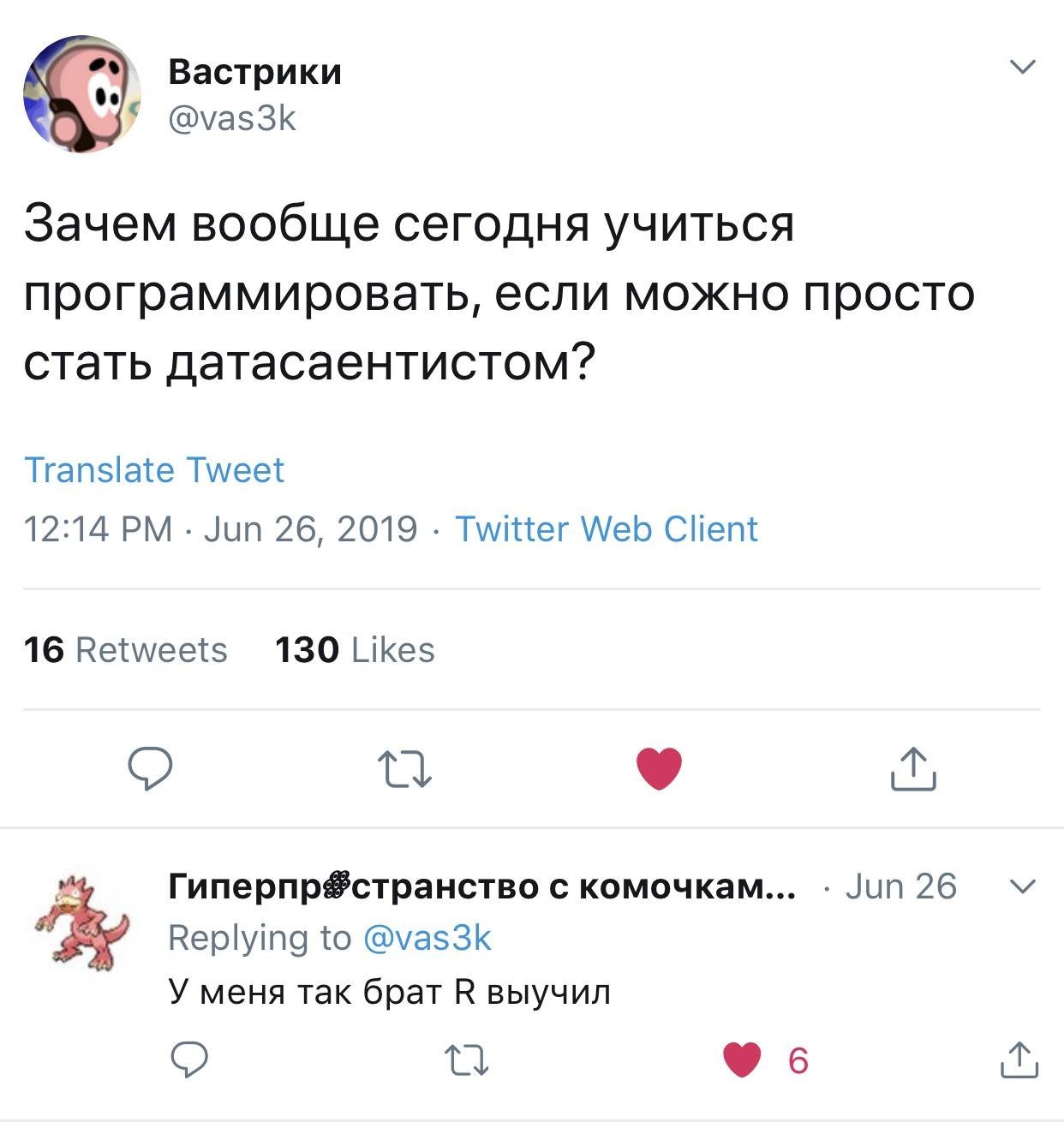 Увидел твит как раз во время изучения R!