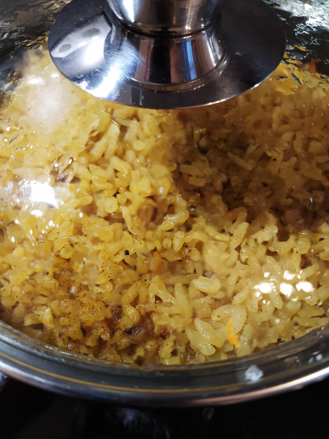 1 см воды над рисом это прям очень много! Я пришел к тому, что воду практически не добавляю, хватает тех 2 см которые добавил на предыдущем шаге.
