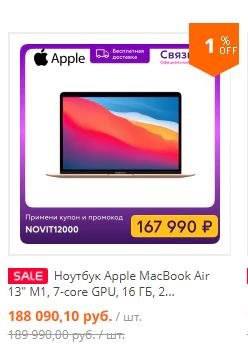 В связном на али можно урвать MacBook air на м1 с хорошей скидкой