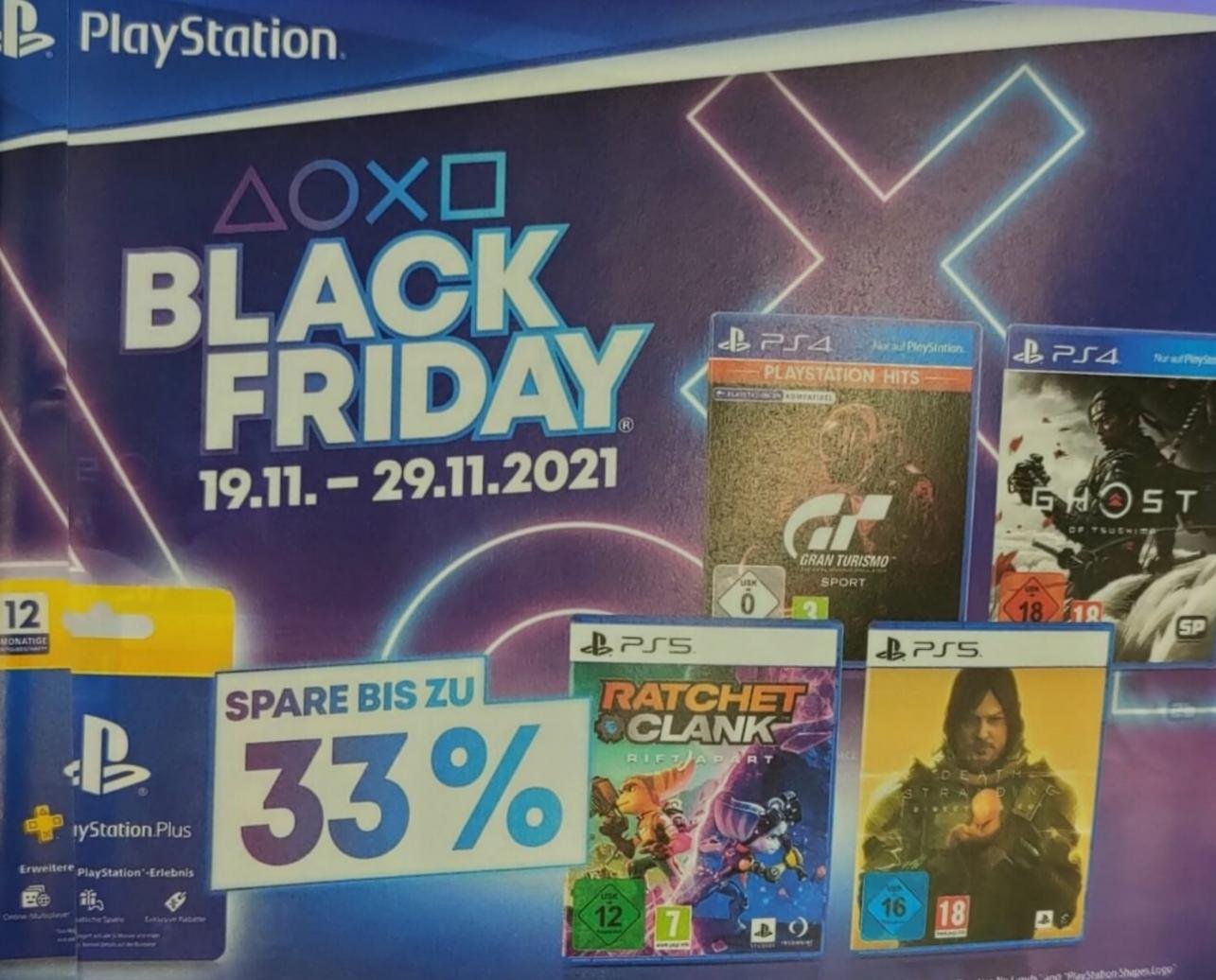 На флаере можно увидеть некоторые игры, где есть недавний Ratchet & Clank: Rift Apart, Death Stranding: Director's Cut и Призрак Цусимы. Кроме этого, можно будет купить годовую подписку PS+ с 33% скидкой.