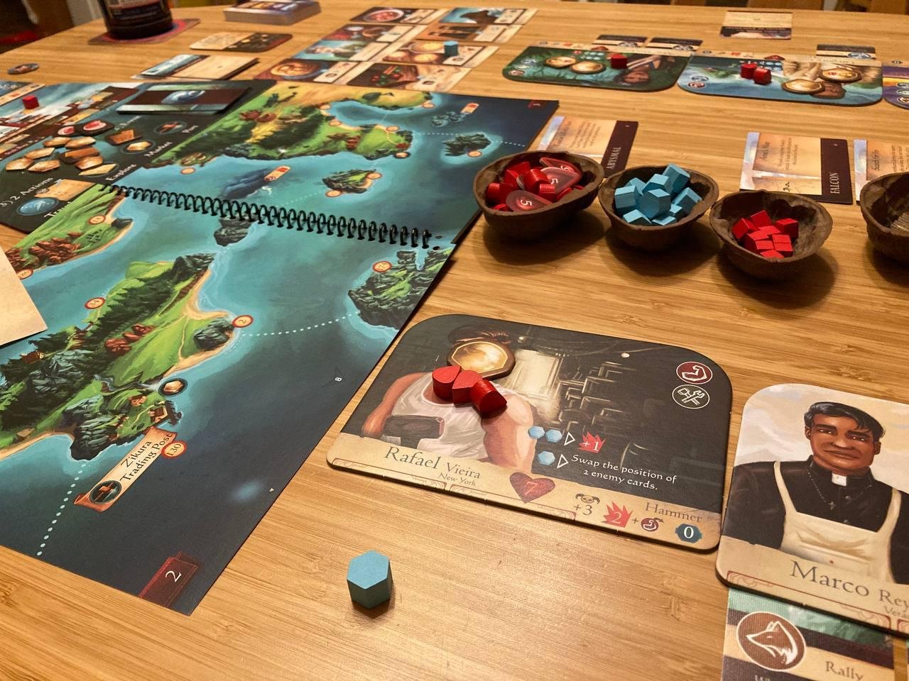 - Описание: Замечательная вариация deck-building, где ты строишь город из карт, комбинируешь способности зверей и зданий. Ресурсов мало, действий - тоже, так что приходится много думать о своих действиях. При этом нет прямой конфронтации с соперником (почти), так что еще одна мирная игра. Каждая новая партия дает новый расклад карт, так что придумываешь новую стратегию на эту партию. Получается очень вариативно и увлекательно. Требуется немного времени на вкатывание, зато потом очень кайфово.