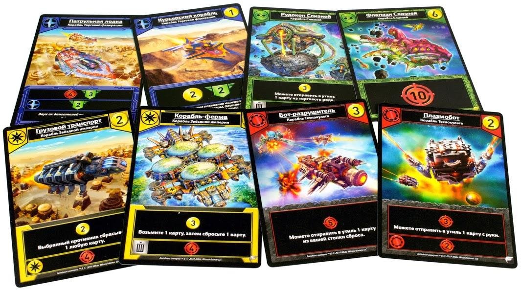 - Описание: Еще один deck-building, на этот раз более традиционная. Строим флот, покупаем новые корабли, атакуем соперника. Потребуется удача и умение подстраивать свою колоду под соперника. Очень большая вариативность: в игре несколько фракций со своими способностями, но их можно комбинировать для пущего успеха. Учитывая, что на подготовку к партии не тратится времени вообще (по сравнению с тем же Clank!), отличаня игра-филлер.
