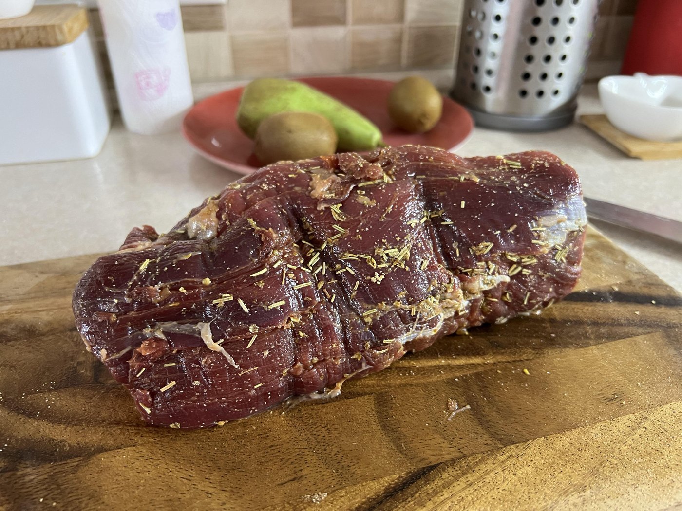 Мяско добыл на воскресном рынке, от местных ребят (https://restaurangag.se) , которые кажется понимают в этом толк. Замариновал немножко, и уже на этом этапе его хотелось скушать =)