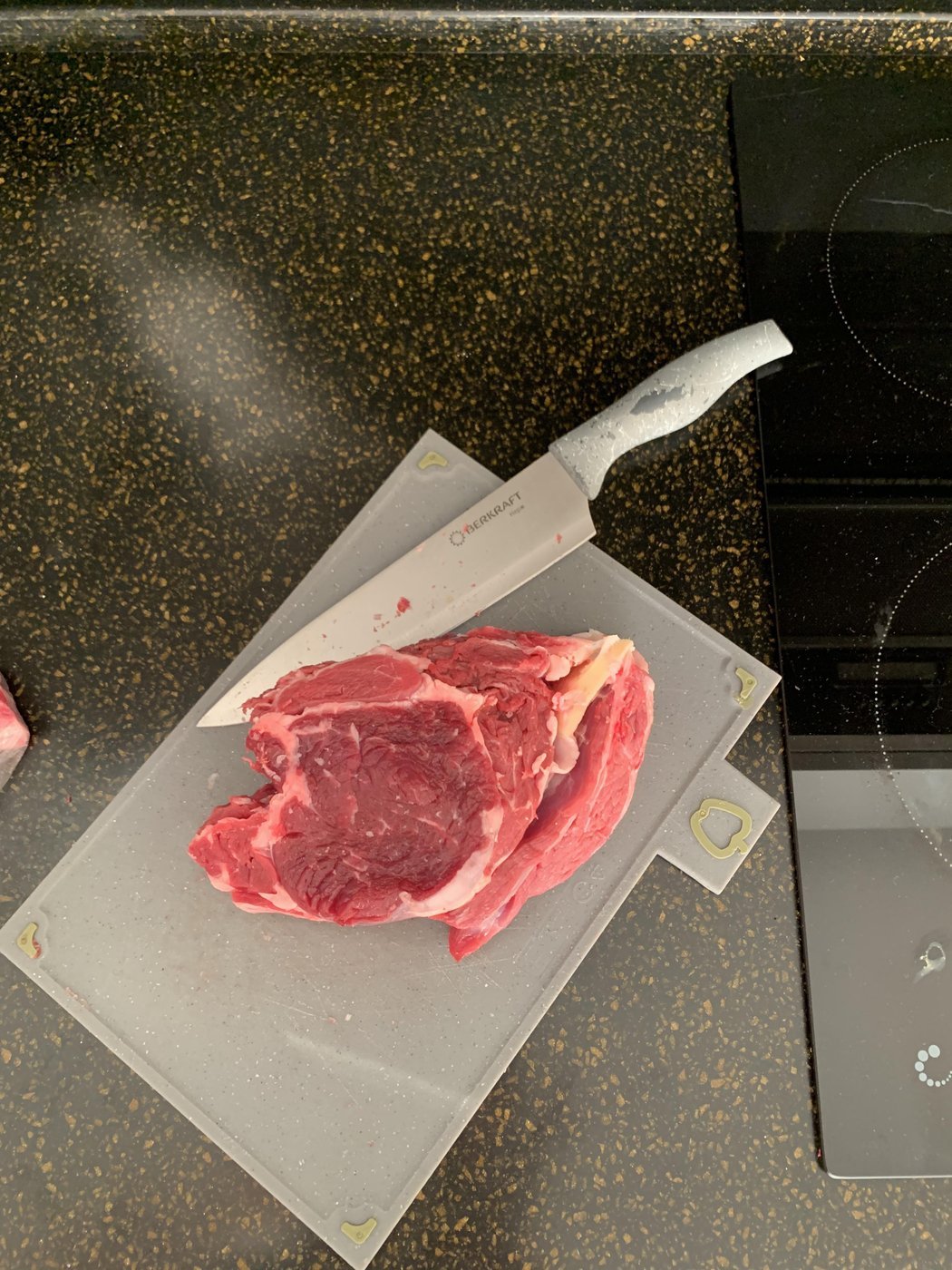 Кусок мяса выбрал неправильный походу - стейк на кости.
