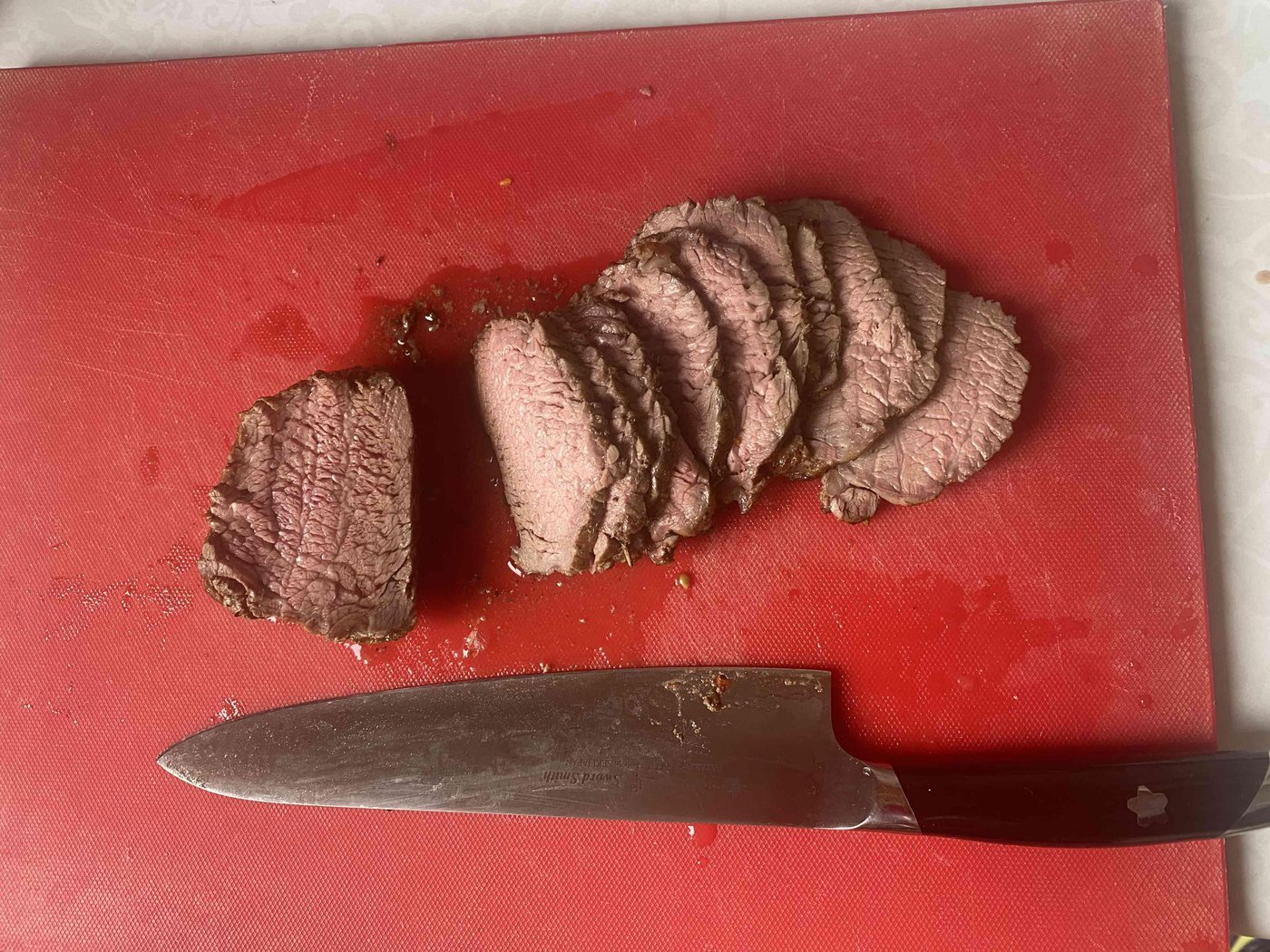 Все бы ничего, но, кажется, с мясом я промахнулся, вырезка из молодого бычка оказалась жестковата.