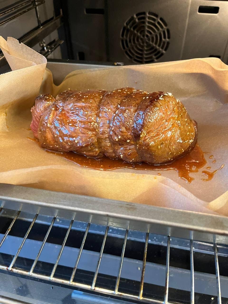 однако отмечу - если запекать по времени, то сложно попадать в прожарку. надо долго тренироваться на одинаковых кусках и видах мяса. то есть тут именно тот самый кейс, где нужен термометр. тогда не надо париться о времени в духовке и типе куска - и всегда будет нужная прожарка.