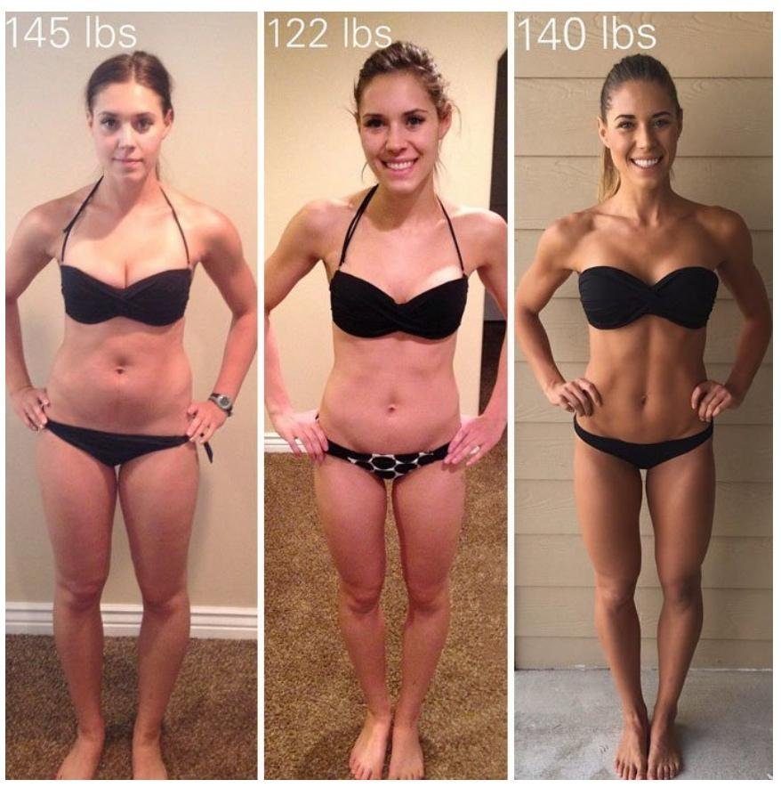 Думаю многим знаком такой образ, когда при общей стройности или даже худощавости у людей всё равно есть проблемы с лишним весом и наличием этого веса в самых ненужных местах. Или когда человек значительно похудел и у него начинает обвисать кожа. Для этого даже появилось такое понятие как Skinny Fat. Похудение не гарантирует гармоничного и подтянутого тела. На картинке ниже видно как девушка похудела с 66 до 55 кг, но совокупно выглядела хуже, чем когда набрала обратно до 64.
