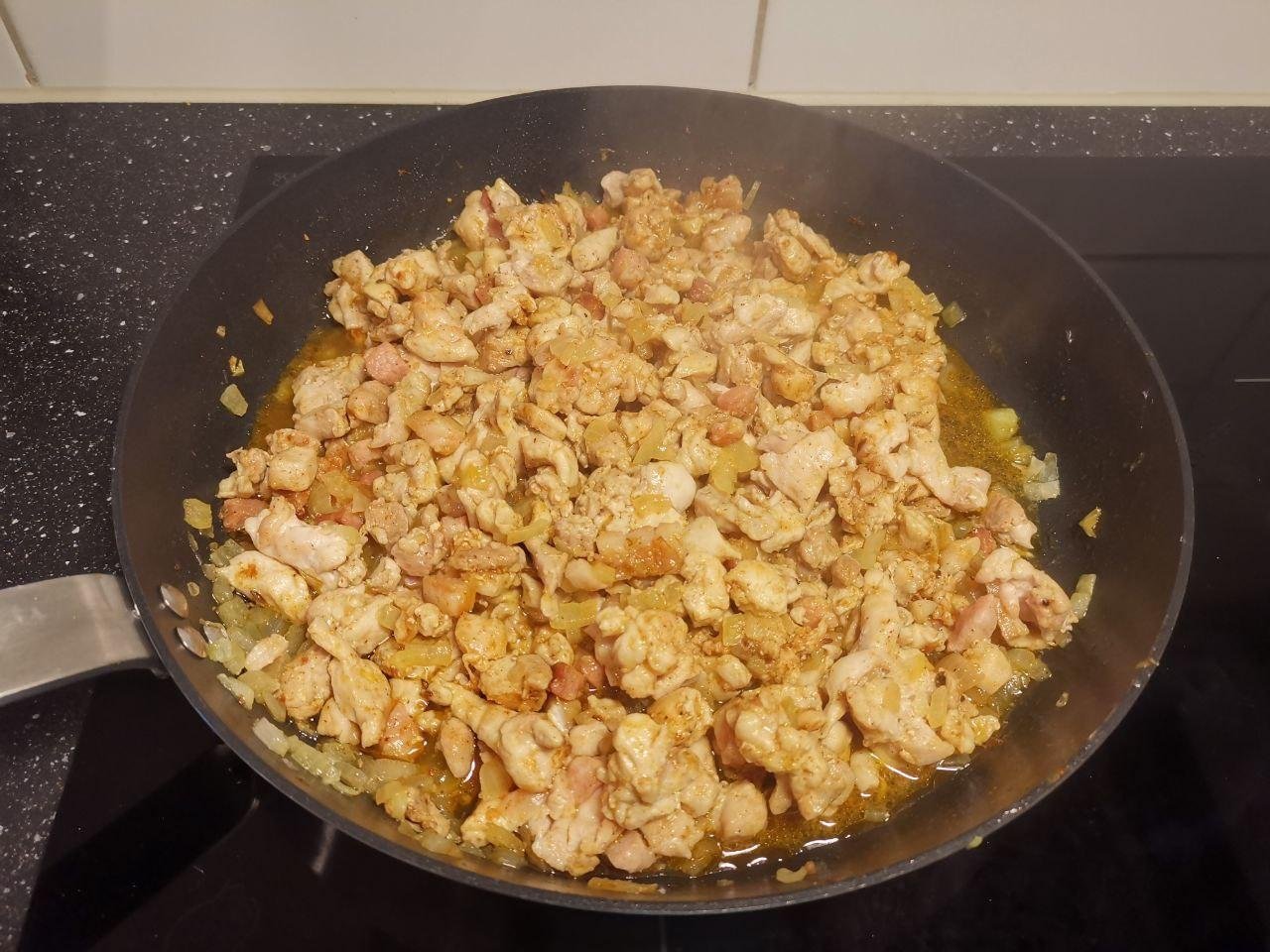 Зато начинка вышла ничего, взяли куриное филе и бедра как в посте, но в следующий раз я бы с бедрами не заморачивалась и добавляла побольше сливочного масла при обжарке лука. Классная возможность добавить много восточных специй, которые в обычной жизни редко используем!