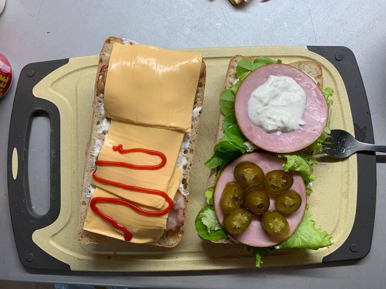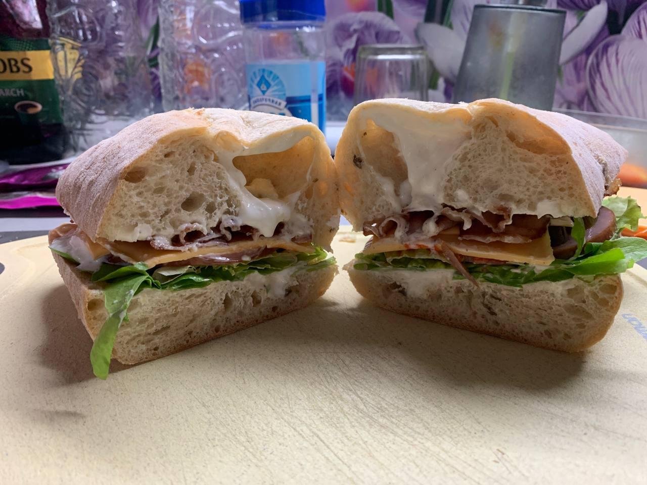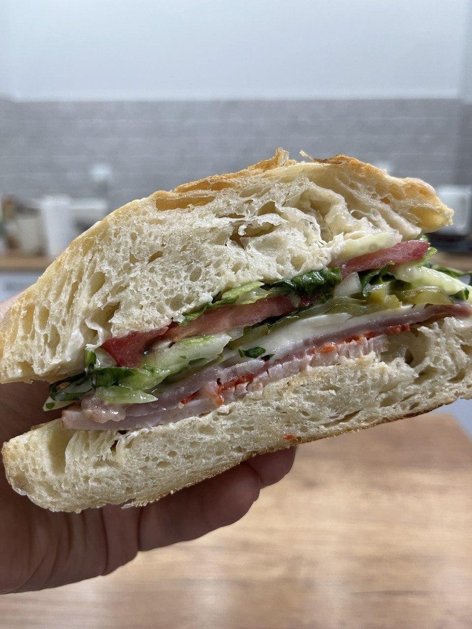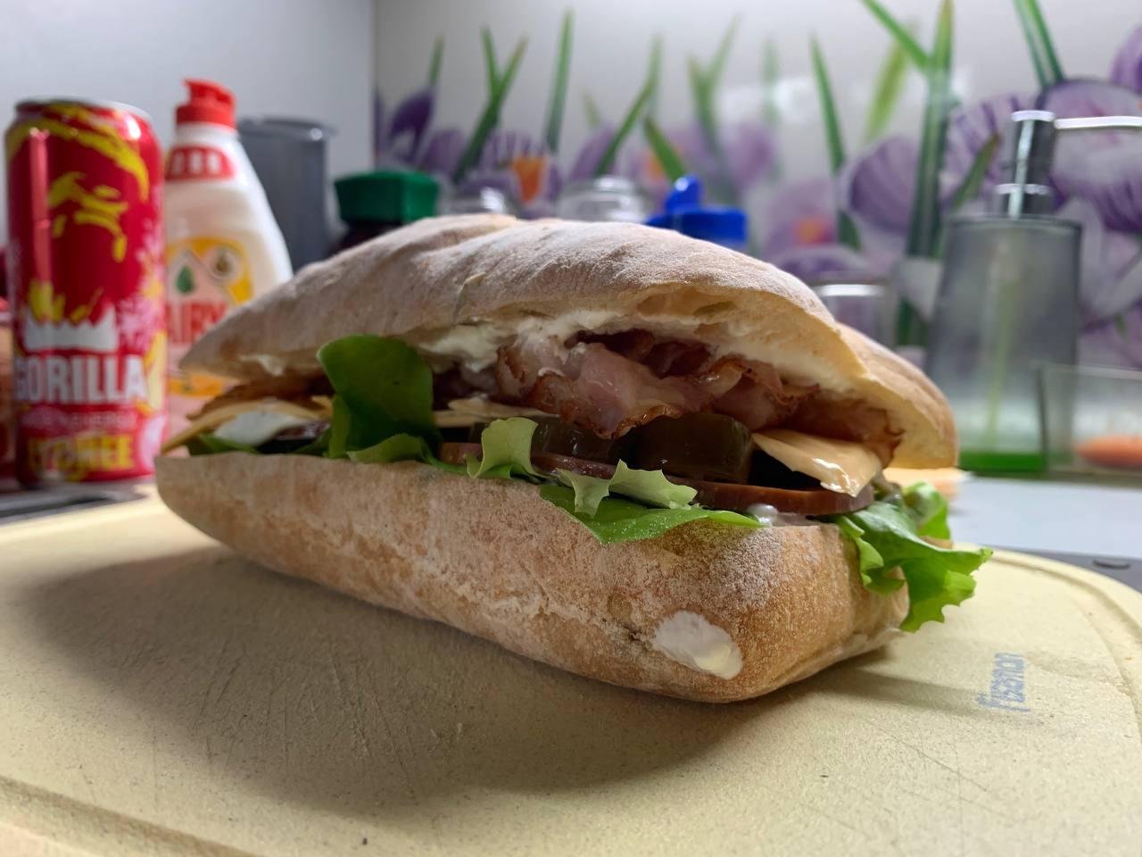 Багетов дома нет, но бутер всё-равно получился крейзи — накормил себя и жену: