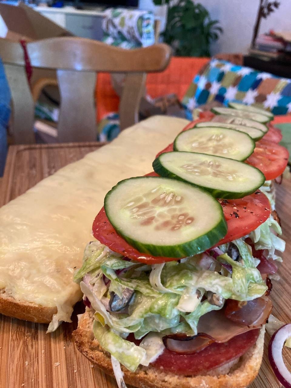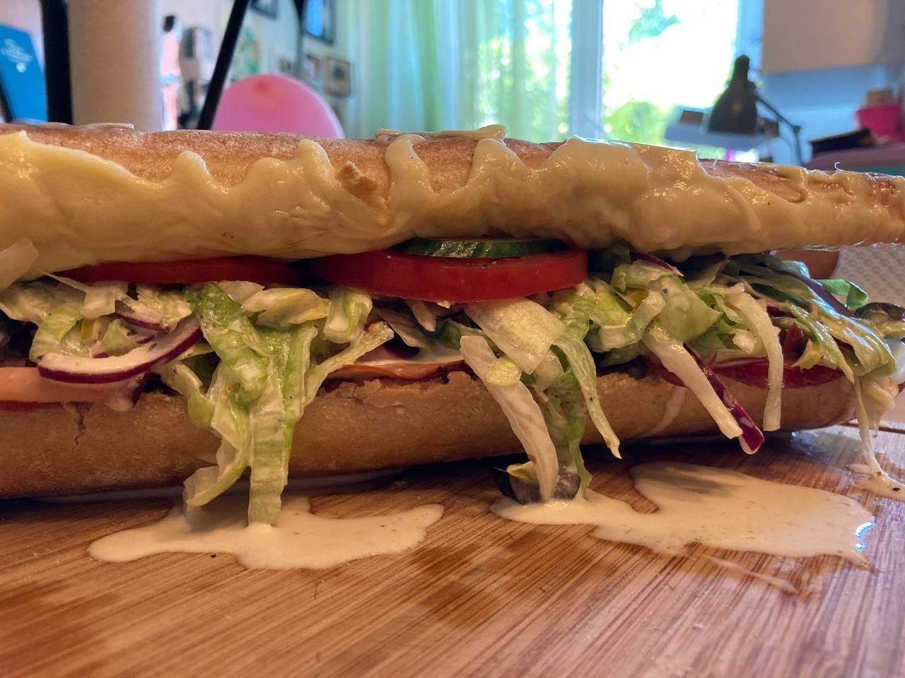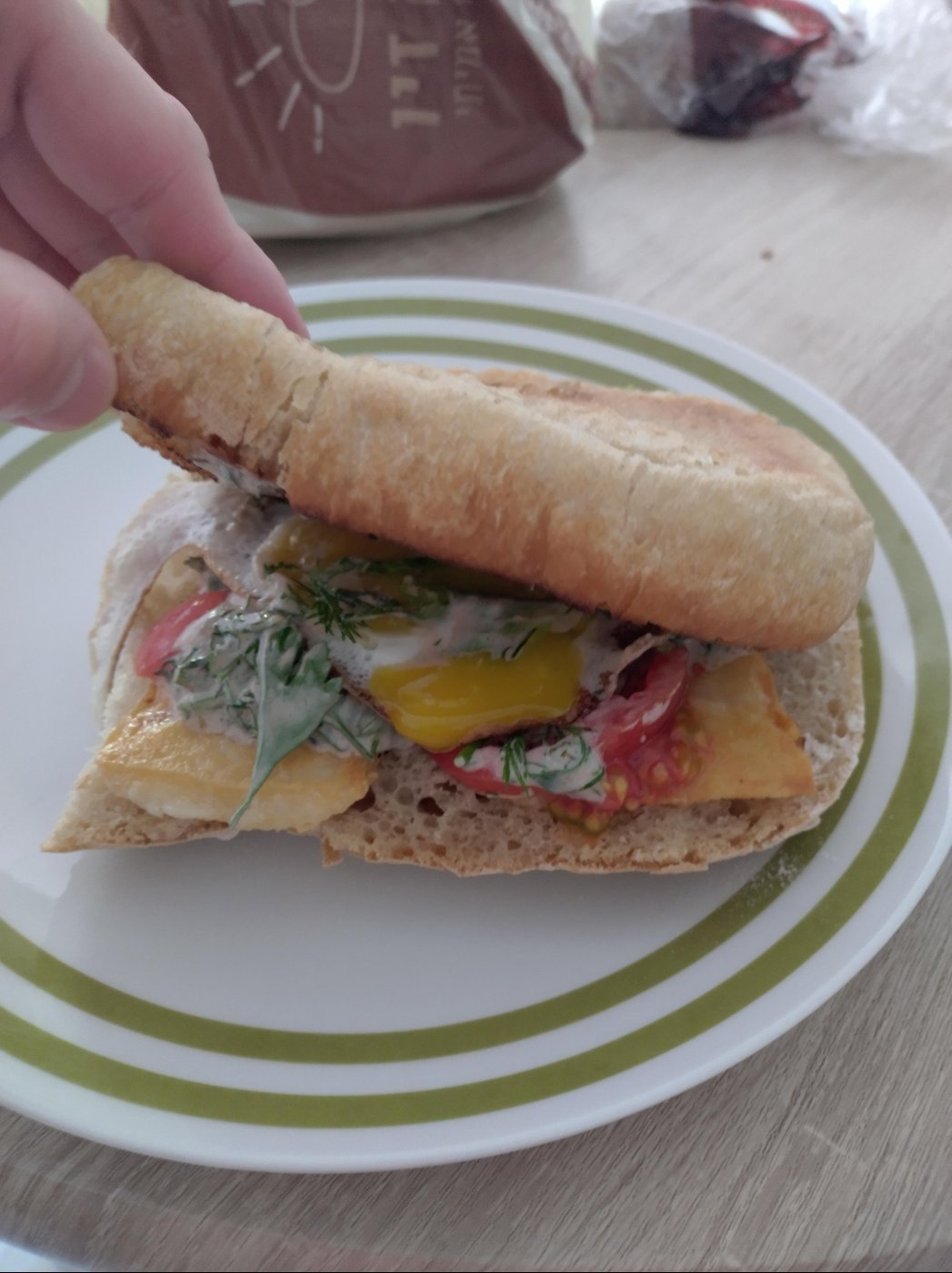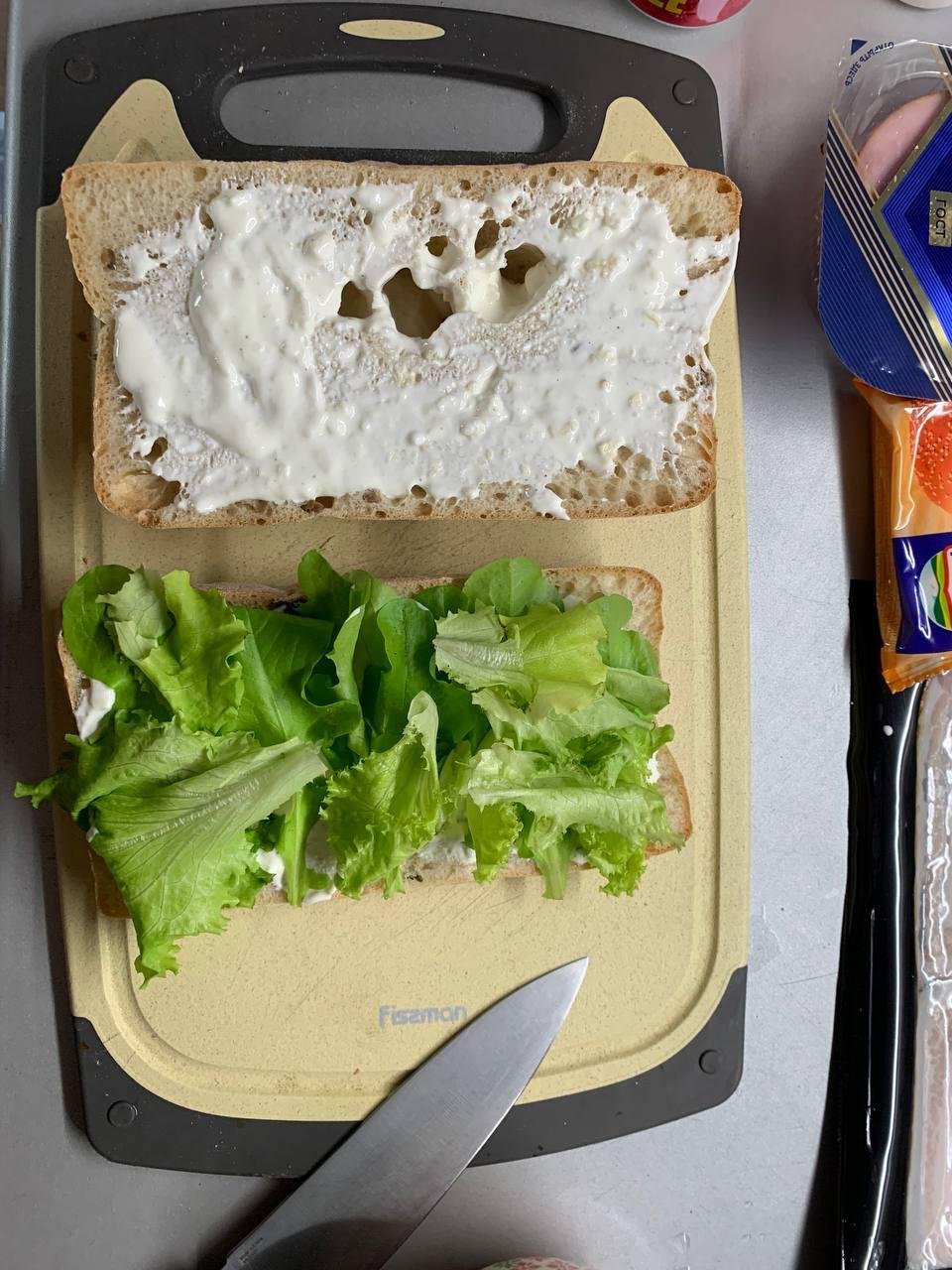 Багетов дома нет, но бутер всё-равно получился крейзи — накормил себя и жену: