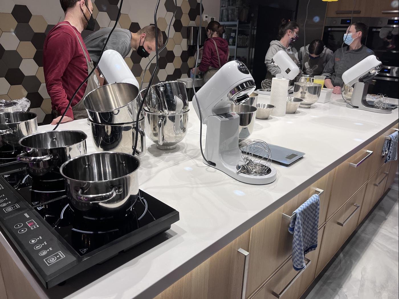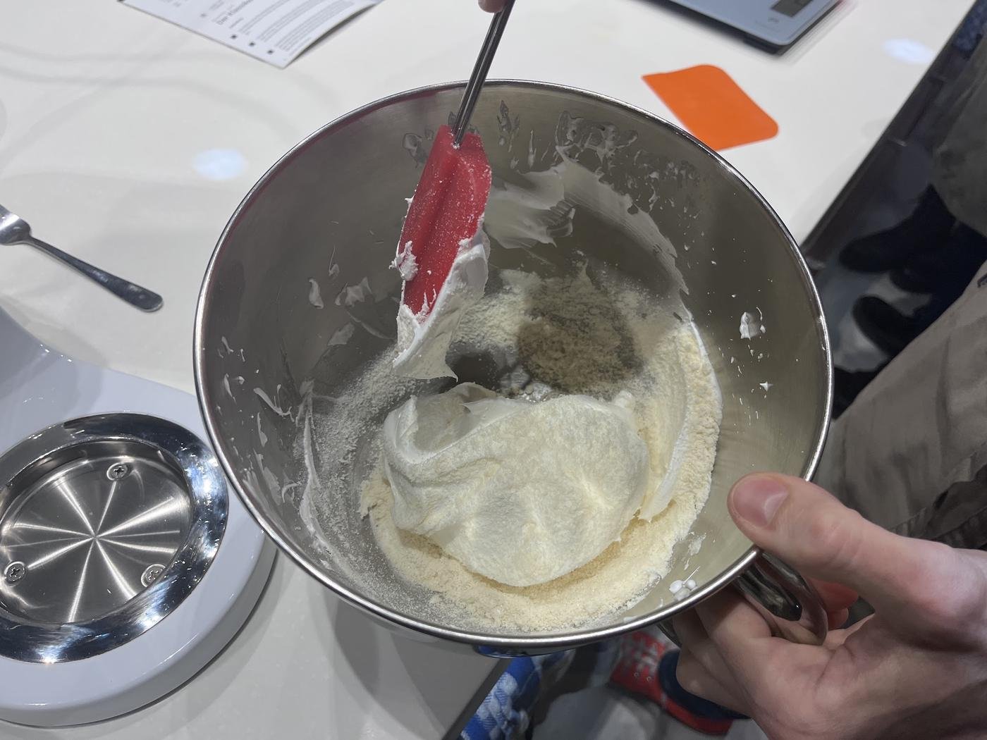 Оказалось, что готовить мы будем в парах, и поскольку я пришла одна, компанию мне составил прекрасный Мирко. Мы не только готовили всё вместе, так он ещё и всё переводил и объяснял моменты, которые мне были непонятны. Если я обычно только выпекаю кексы по принципу «смешал все ингредиенты и пеки», то Мирко более продвинут во всех кондитерской теме и по ходу давал советики, типа как лопатку правильно держать и с какой силой мешать тесто, чтоб по всем правилам.