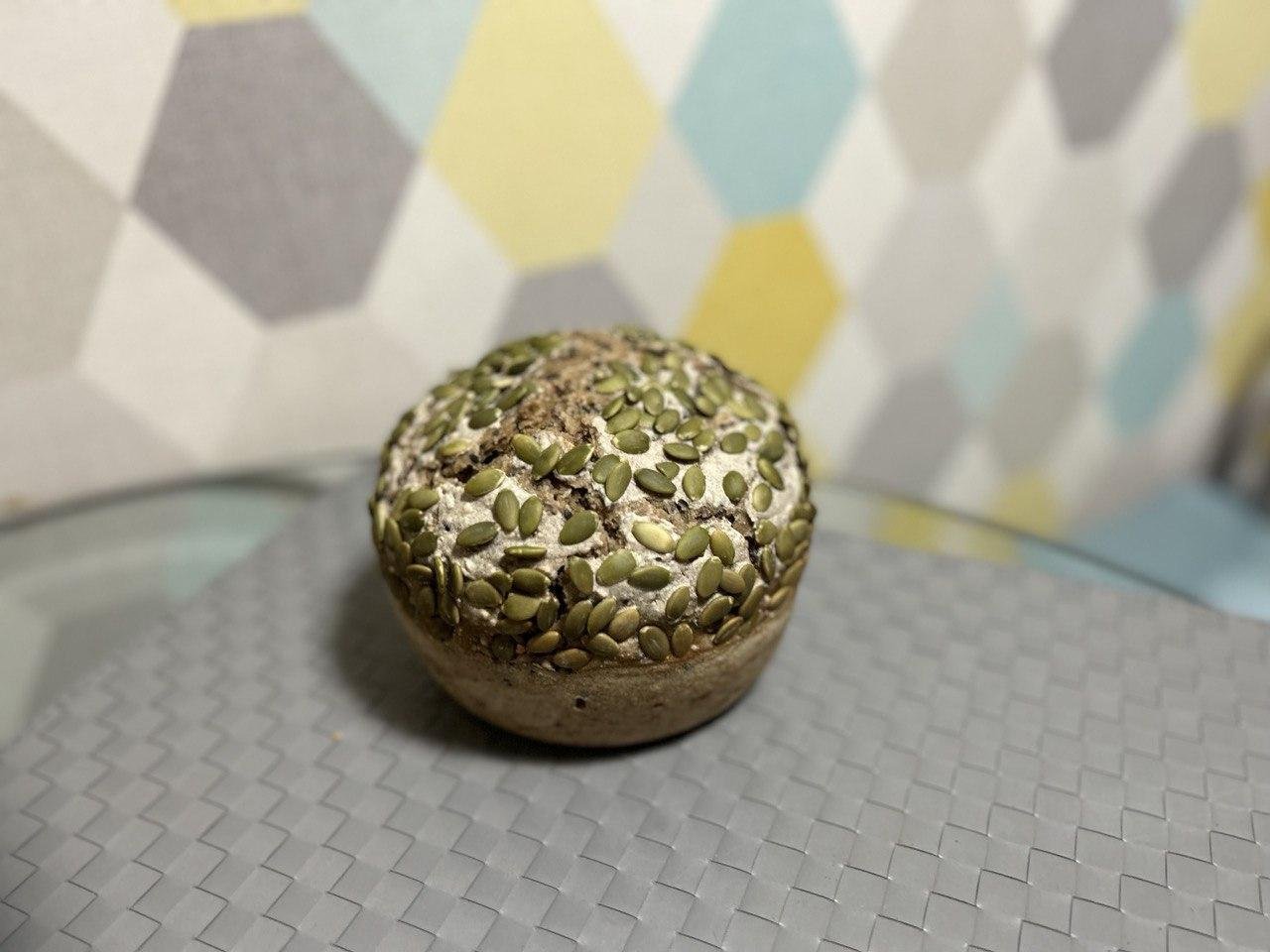 У меня была смесь из подсолнечника/тыквенных семечек/кунжута и я ее добавляла в тесто, плюс посыпала тыквенными семечками сверху. В итоге получилась такая буханка хлеба