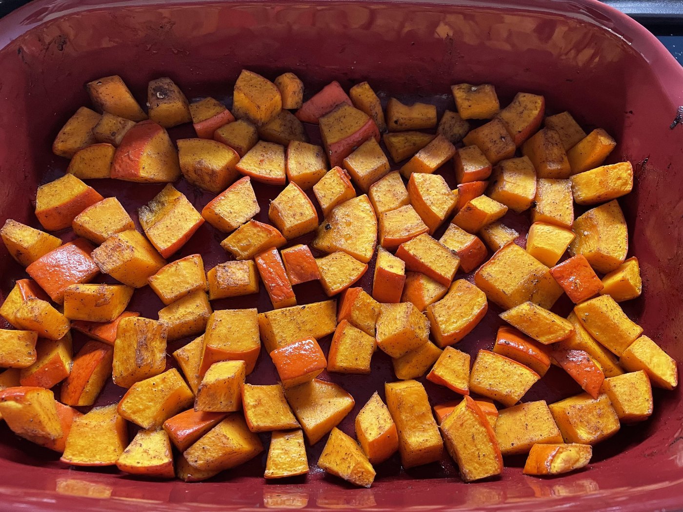 - Обваливаем с чайной ложкой масла и специями. Тыква сладкая, поэтому и специи соотвествующие - молотая гвоздика, чуть аниса, гарам масала, мускатный орех.