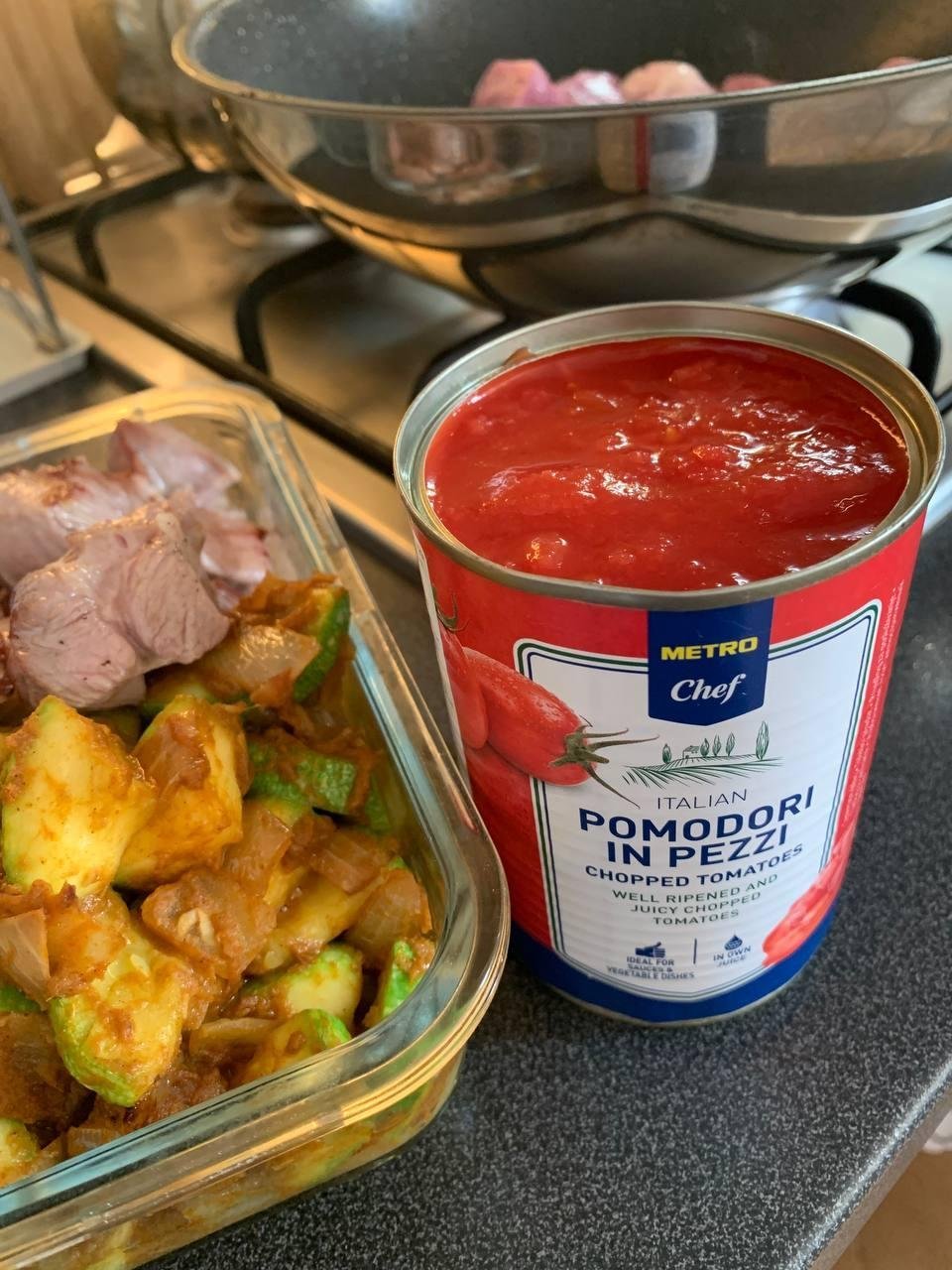 Дисклеймер: количество ингредиентов в рецепте очень условно. Специи даны на 1 банку помидоров + 1 банку кокосового молока. Остальное можно по желанию подстраивать на вкус.