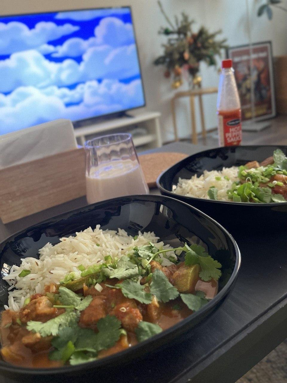 Это был вечер, когда всё пошло по жопе. И рис я перелил, и курицу подсушил, и забыл сфоткать красиво. Да и когда фоткать, когда такие запахи!