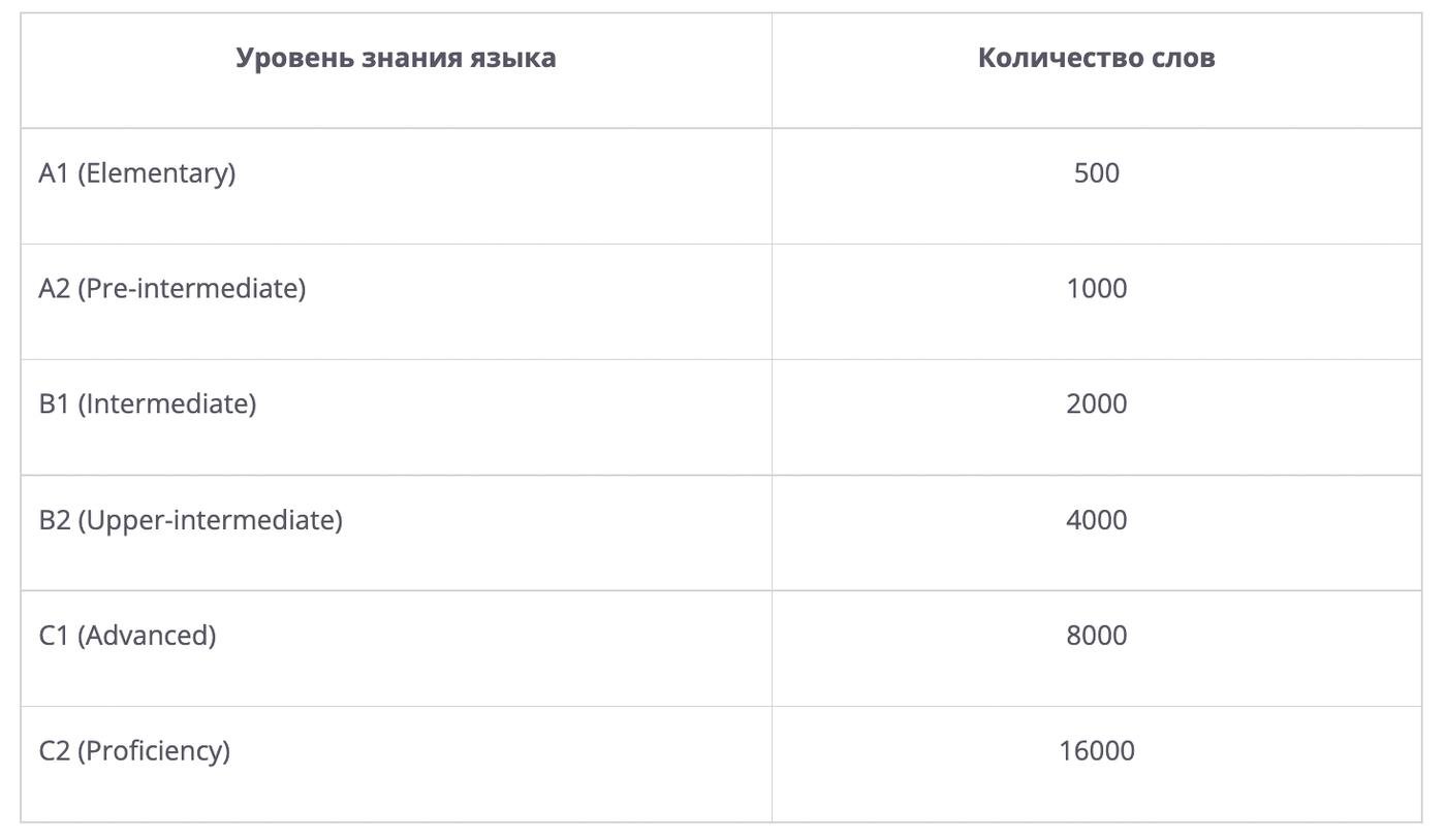 Насчет целевой цифры даже не берусь ничего утверждать. Если начать искать, сколько слов должно быть на каком уровне, можно заблудиться в вариантах ответов.