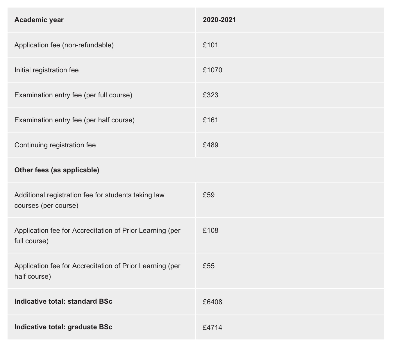 В таблице много непонятного Initial registration fee, Indicative total: graduate BSc, Indicative total: standard BSc, сходу непонятно.