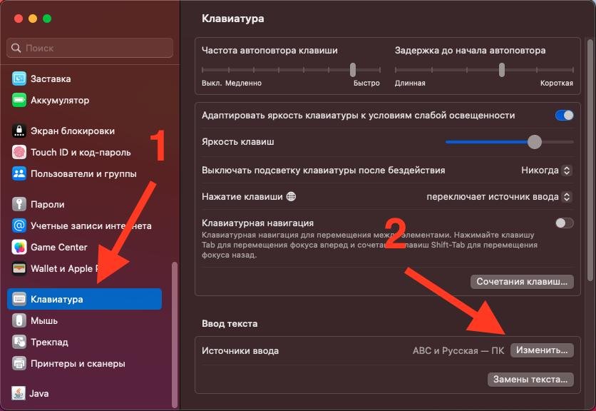 Заходим в «Системные настройки -) Клавиатура -) Источник ввода: изменить»