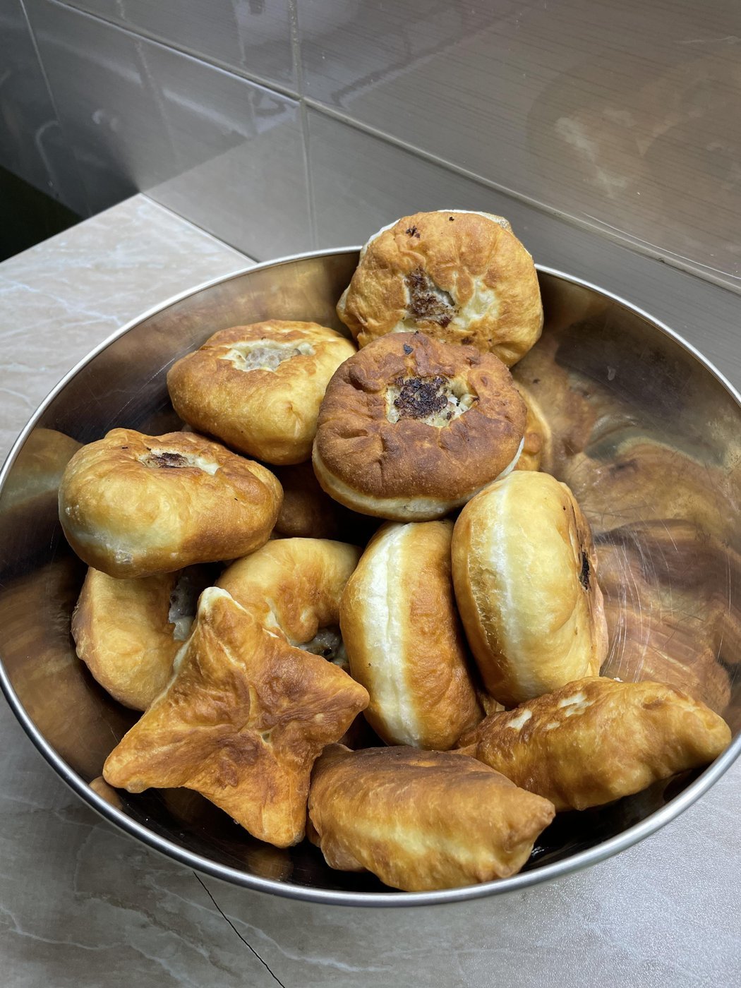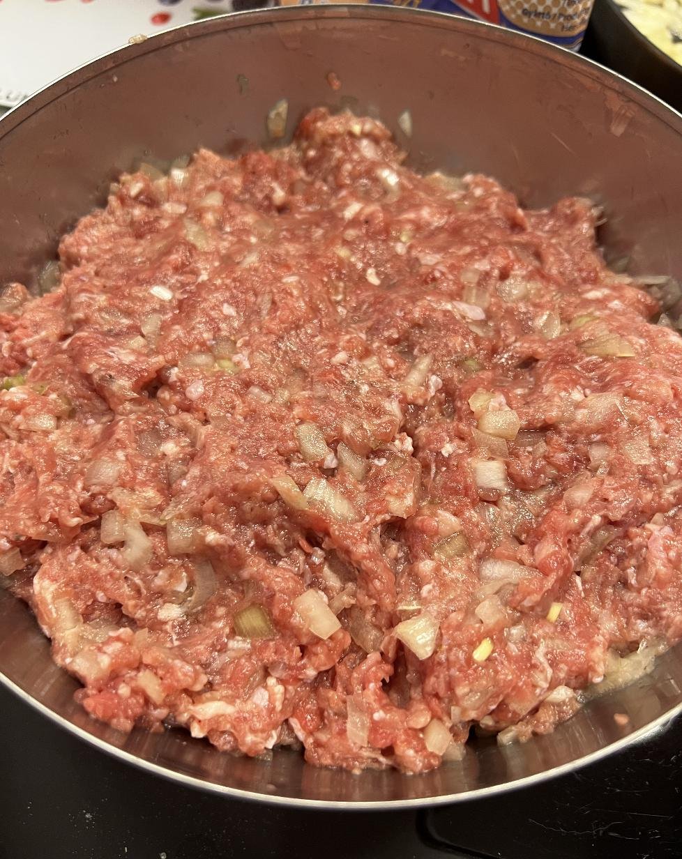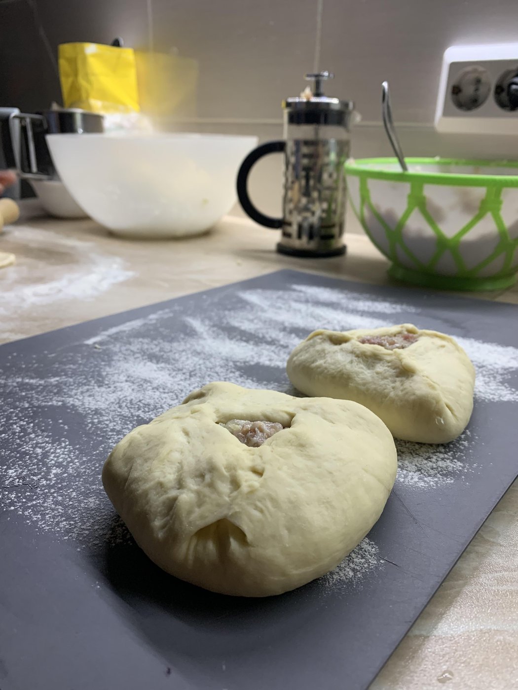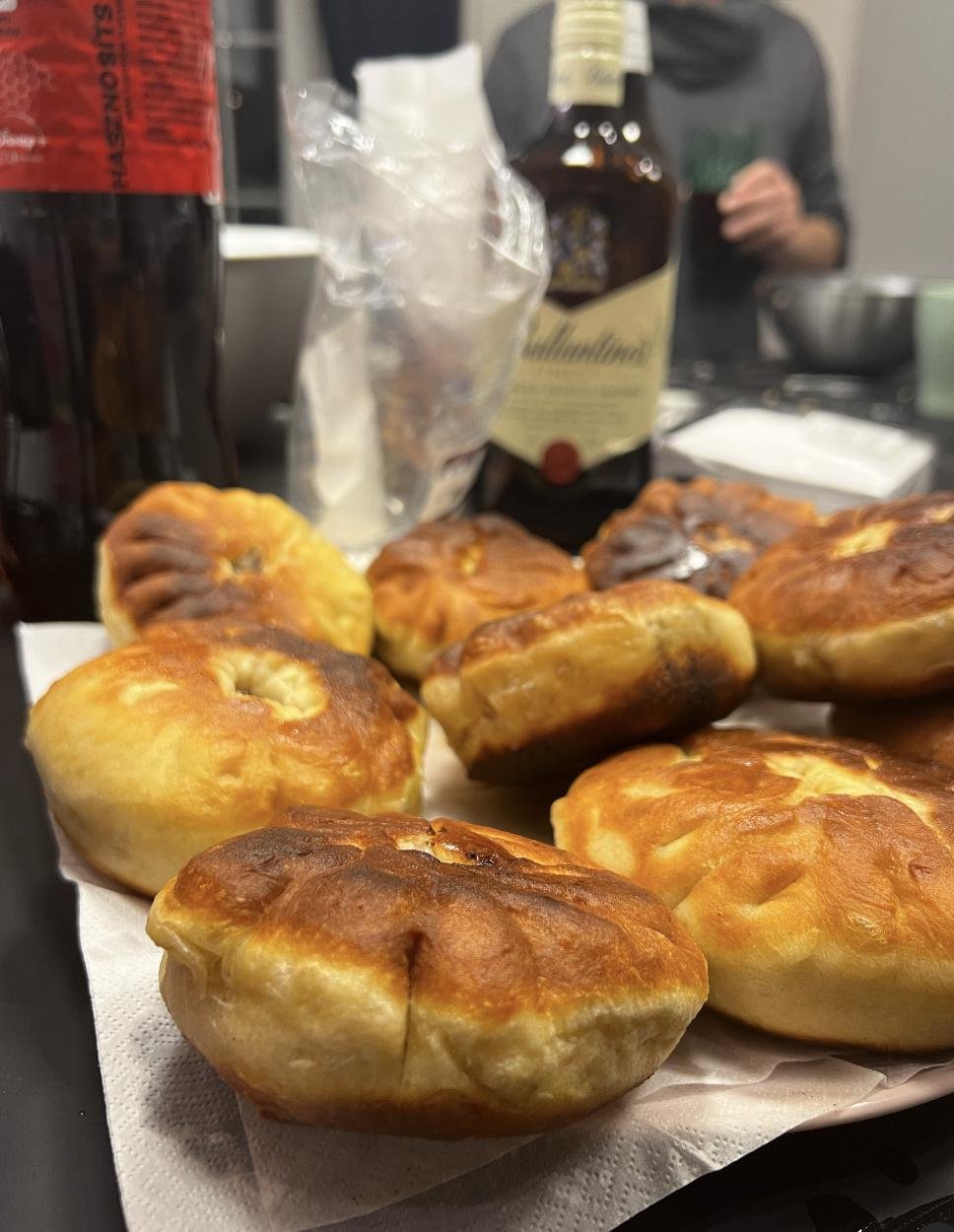 В процессе готовки поняли, что скульпторы из нас так себе, поэтому по форм-фактору получились скорее хинкали (я хз как еще заворачивать их) и один недочебурек потому что мы можем.