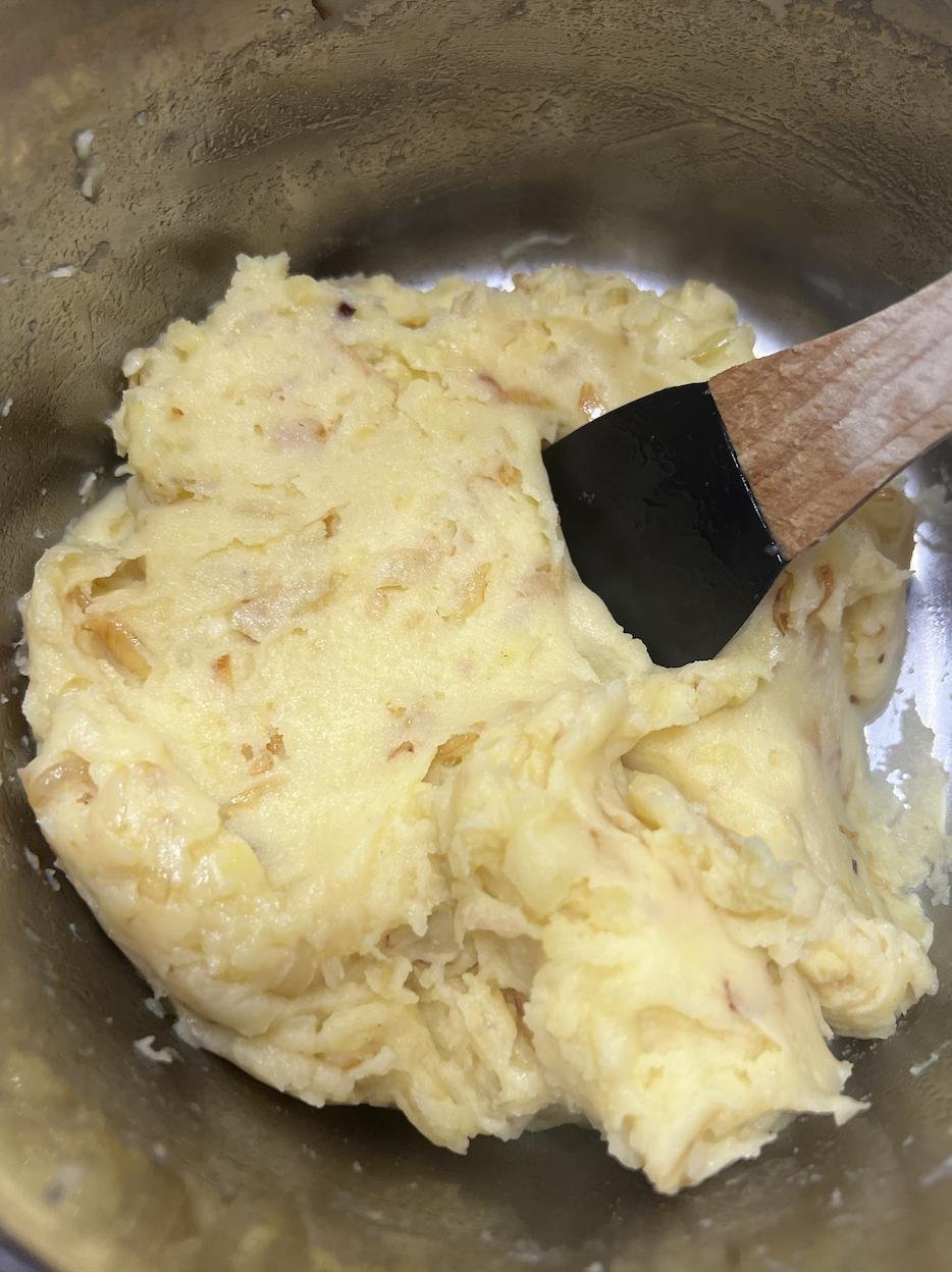 Лайфхак: сделайте теста побольше, оно прекрасно замораживается. И когда будете в следующий раз делать пюре, оставьте пюре нутро и достаньте небольшую порцию теста из морозилки. Утром раскатали-пожарили-начинили, и вуаля!