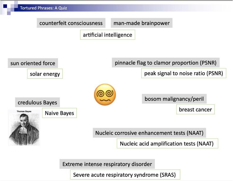 Примеры tortured phrases, слайд авторов статьи