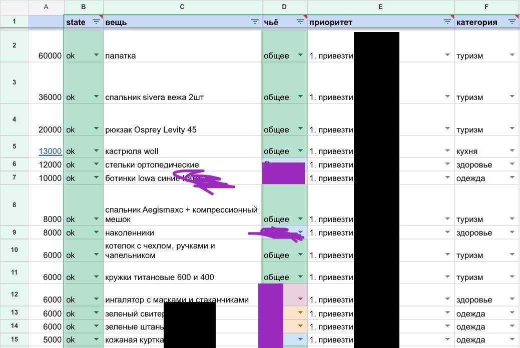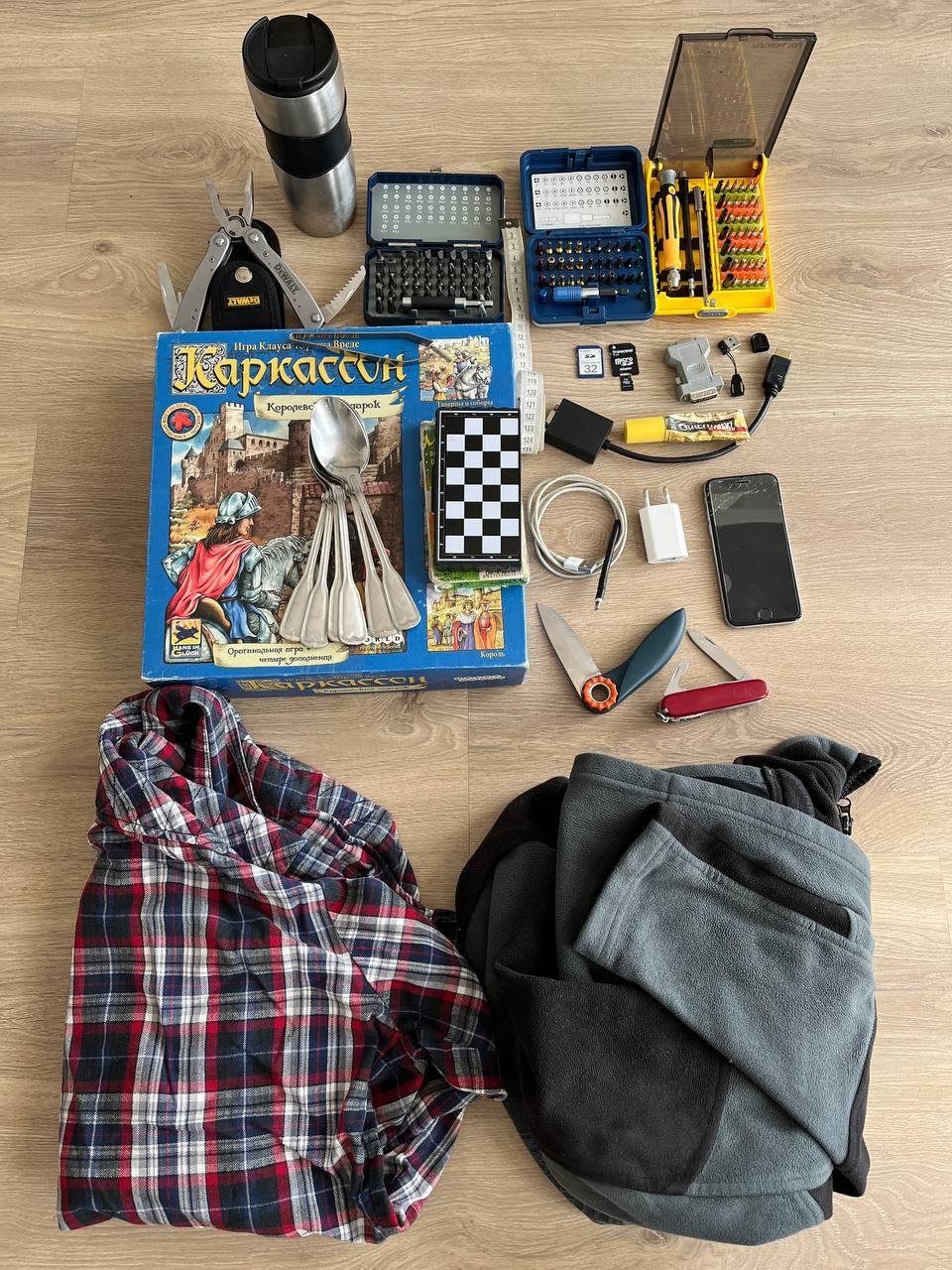 Получилось 100кг вещей на троих включая ручную кладь. Во многом это была туристическая снаряга (дорогая и легкая), но было странное: кофемолка, стэйчница цепторовская, рол для прокатки.