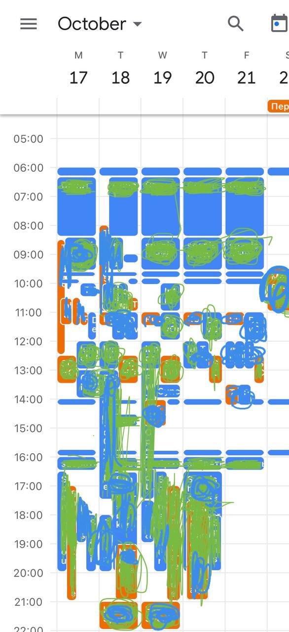 Порой спрашивают как оно тут? кратко: Хорошо, но дел много первые полгода. Примерно так выглядел календарь. С 6 до 20 все расписано было… Потом устаканилось, появилось свободное время.