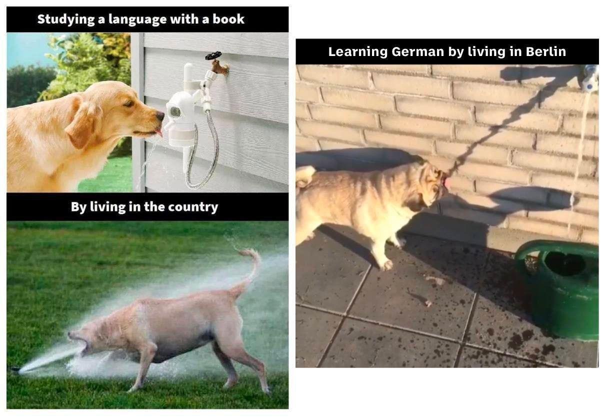 Ну и финальная часть это конечно болтать. Так как мы в разделе трактора, то думаю большинство уже находится на немецкоговорящем пространстве. Я правда переезжал уже зная язык, так что эту часть буду освещать со своей высокой колокольни и возможно немного оторванно от реальности. Самый действенный совет — это пушить себя социально. Это больно. Но со временем становится легче. Как правильно написано в посте, легко оказаться в ситуации, где либо с тобой переходят на английский, либо ты сам от безысходности. Первый шаг — насильно забываем английский. Второй шаг — говорим как можем. Да, основная проблема это действительно найти с кем таким говорить, но если у вас нет моральных сил докапываться до незнакомцев, то смело ищем в условном фейсбуке группы форматы «языковой тандем берлин», предлагаем, что имеем в распоряжении, забираем немецкий.