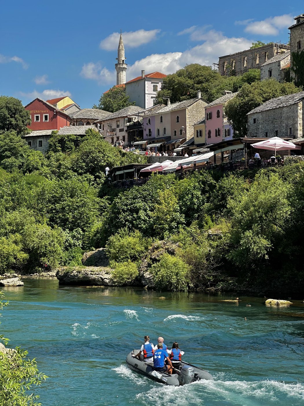 Отдельного упоминания заслуживает дорога вдоль зелёных гор и реки с невероятным бирюзовым оттенком — одна из самых красивых, по которым мне когда-либо доводилось ездить, особенно её участок от населённого пункта Коньиц и почти до самого Мостара. По пути также можно сделать остановку на обед в ресторане с чудесным видом — Kovačević, где отведать один из главных деликатесов местной кухни — ягнятину на гриле.