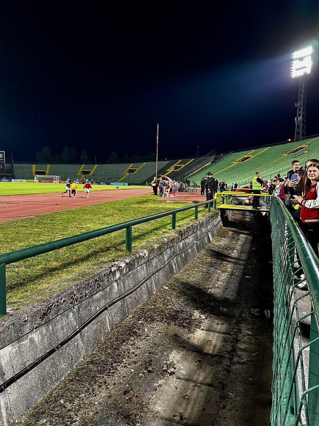 Уровень безопасности не уступает средневековой крепости: поле от трибун здесь ограждено рвом (такого я ещё нигде не видел)! Чтобы всякие там любители срывать матчи, играя в догонялки с сотрудниками ЧОП и штурмуя футболистов, не добрались до цели. Впрочем, в конце этой игры ни ров, ни доблестные зазевавшиеся стюарды, не смогли сдержать натиск нескольких прорвавших оборону и устремившихся к своим кумирам пацанов.