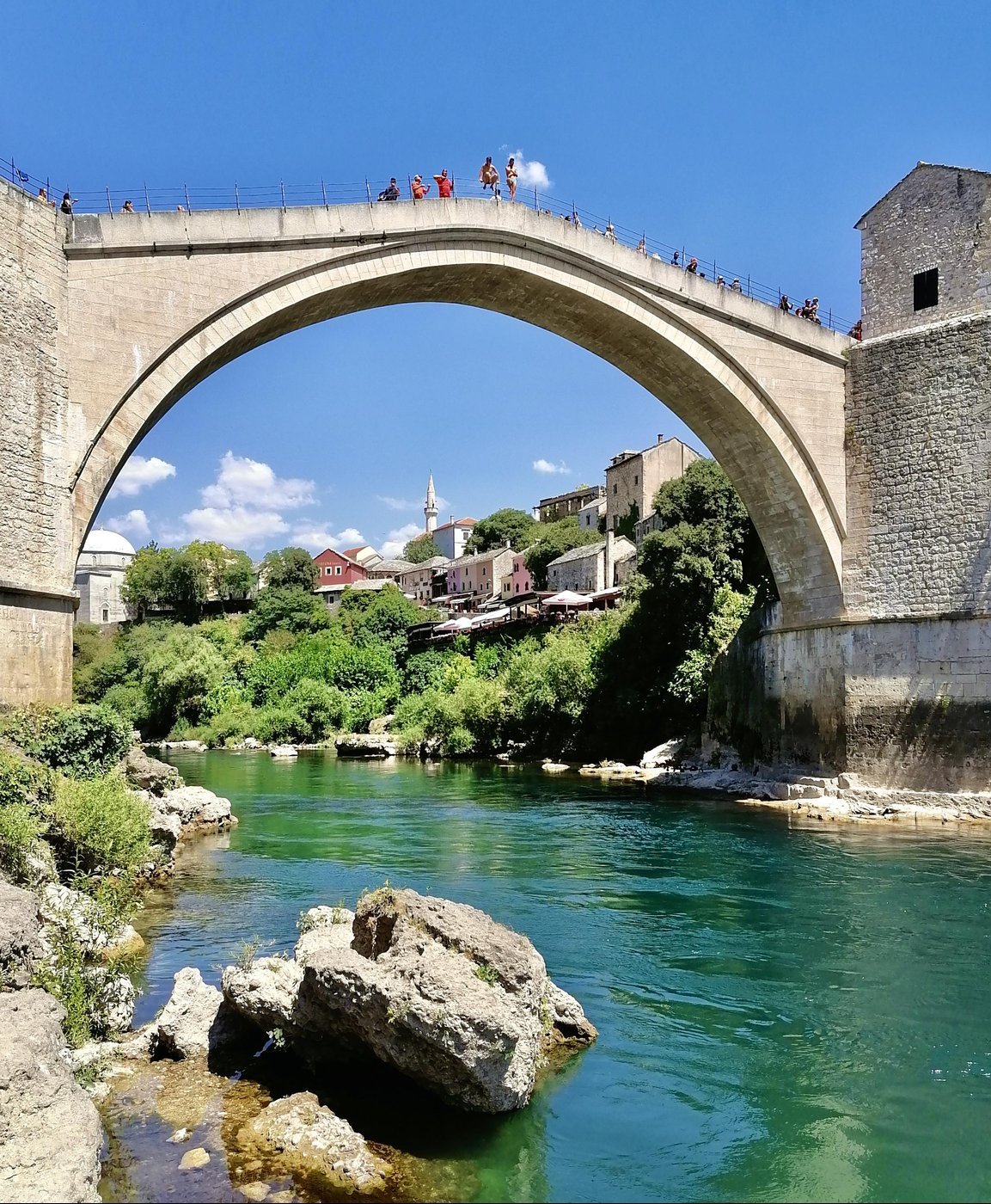 Надо сказать, что прелести Боснии и Герцеговины не ограничиваются её главным городом. Мне пока удалось посетить не так много других знаковых мест, но одно из них точно стоит упоминания — находящийся в двух часах езды город Мостар с его, пожалуй, самой узнаваемой визитной карточной этой страны — Старый мост, откуда в качестве развлечения с высоты 24 метров периодически прыгают в довольно мелкую речку специально подготовленные люди, что выглядит эффектно, но не всегда безопасно.