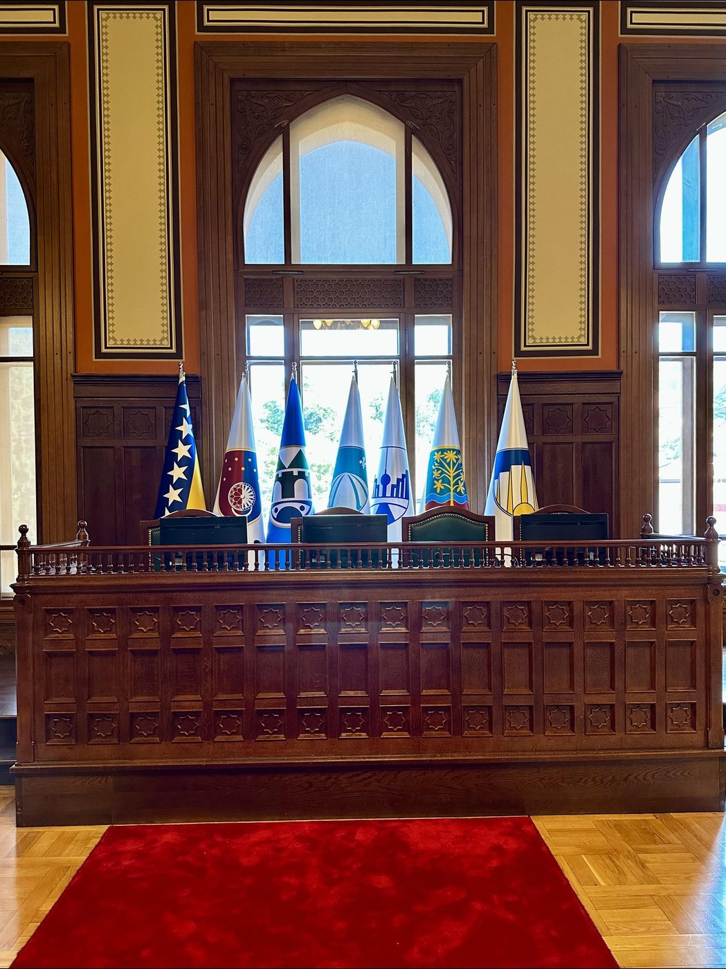 Хотя и кроме этого тоже есть на что посмотреть: залы заседаний, фото всех глав города, немного истории, небольшая экспозиция с эрцгерцогом, документы по трибуналу по бывшей Югославии.