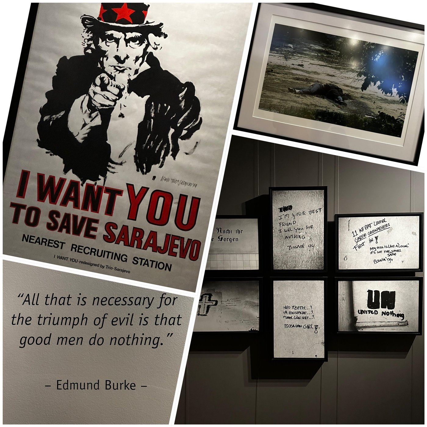 Кроме того, есть музей военного детства, красноречивое название которого не нуждается в лишних комментариях, музей преступлений против человечности и геноцида, музей осады Сараева, Галерея 11/07/95. И всё это лишь те самостоятельные тематические музеи, которые я заметил, без учёта отдельных связанных с этим выставок в других местах. Какие-то из них более интерактивные и современные, направленные в основном на сухие факты и хронику, другие, скорее, про эмоциональное восприятие случившегося через личные вещи, архивы и воспоминания очевидцев той трагедии, но несмотря на уникальность каждого из перечисленных музеев, главное, что их роднит, — шокирующие свидетельства военных преступлений, которые с ужасной точностью передают происходящее, благодаря (если это слово вообще уместно в данном контексте) уже появившимся на тот момент неплохим возможностям для цветной фото- и видеосъёмки. Это оказывает сильнейшее впечатление.