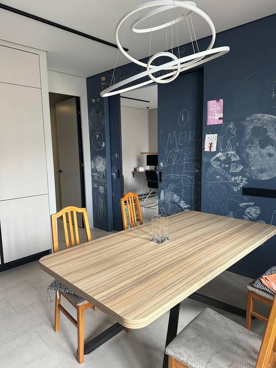 т.к. дверь была под покраску то смогли одну ее сторону покрыть краской под рисование мелом и магнитики
