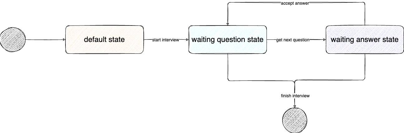 Плюс, оказалось, что он весьма неплохо (на мой дилетантский взгляд) умеет проводить собеседования на английском языке. Но каждый раз вводить стартовый промпт мне было немного лень, а программистское нутро хотело запилить какой-нибудь pet-проект на Golang. Поэтому мне в голову пришла идея сделать Telegram бота, который умеет проводить моки интервью на английском по выбранной специальности.