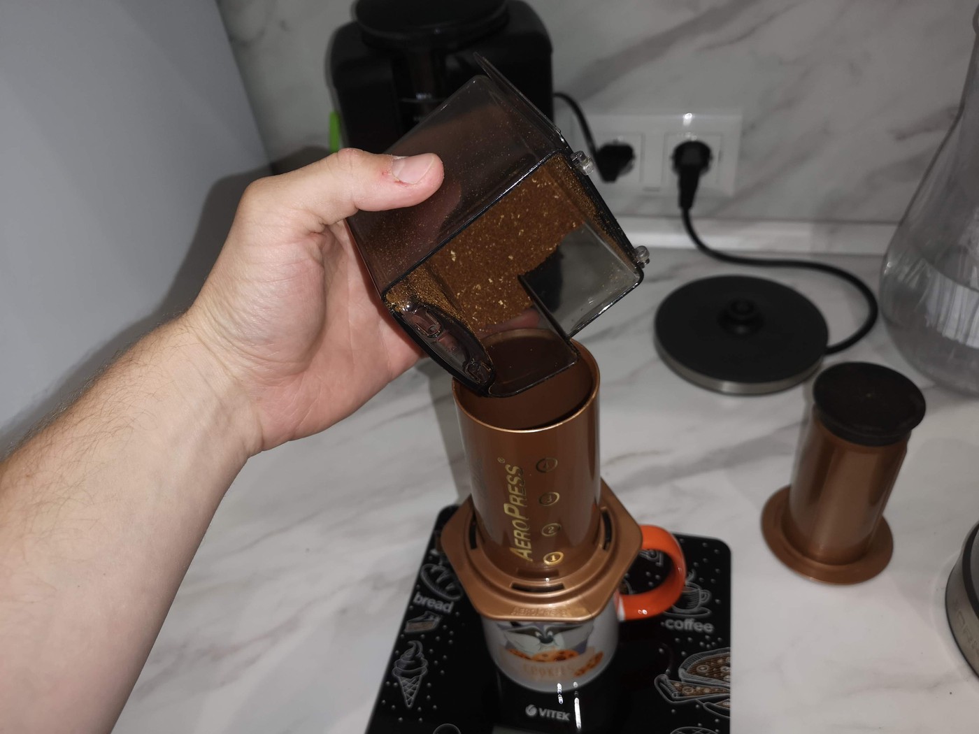 Помол словами я не осилю описать, на своей кофемолке возьмите чуть мельче, чем средний. На Wilfa прям подписан помол для аэропресса, удобно. Чуть дальше я расскажу, как настроить помол под свои вкусовые предпочтения.