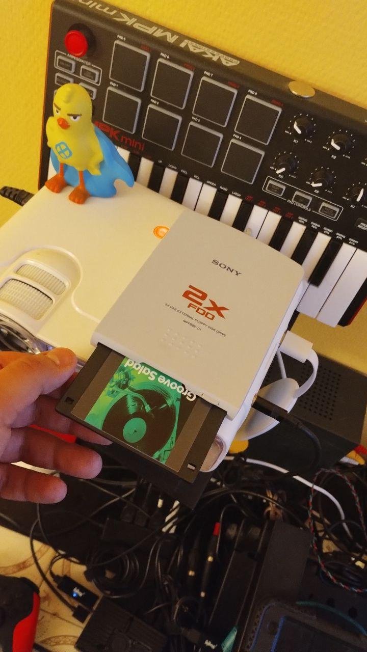 Всегда нравились дискеты, прикольные они какие-то, эта шторка, кнопка eject на приводе. Только места маловато. Пошел гуглить похожие форматы и наткнулся на minidisk: 160 мегабайт, с использованием родного сжатия, получается 60-80 минут звука. Кажется, ощущения от использования будут очень похожие, но при этом музыка будет на самом носителе. Теперь хочу себе такое найти. И диски даже до сих пор производят (а вот железо, уже нет).